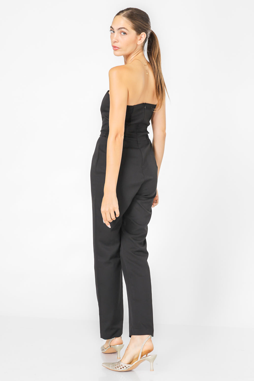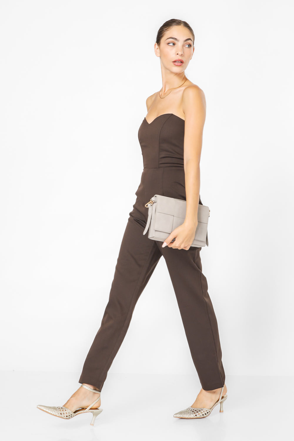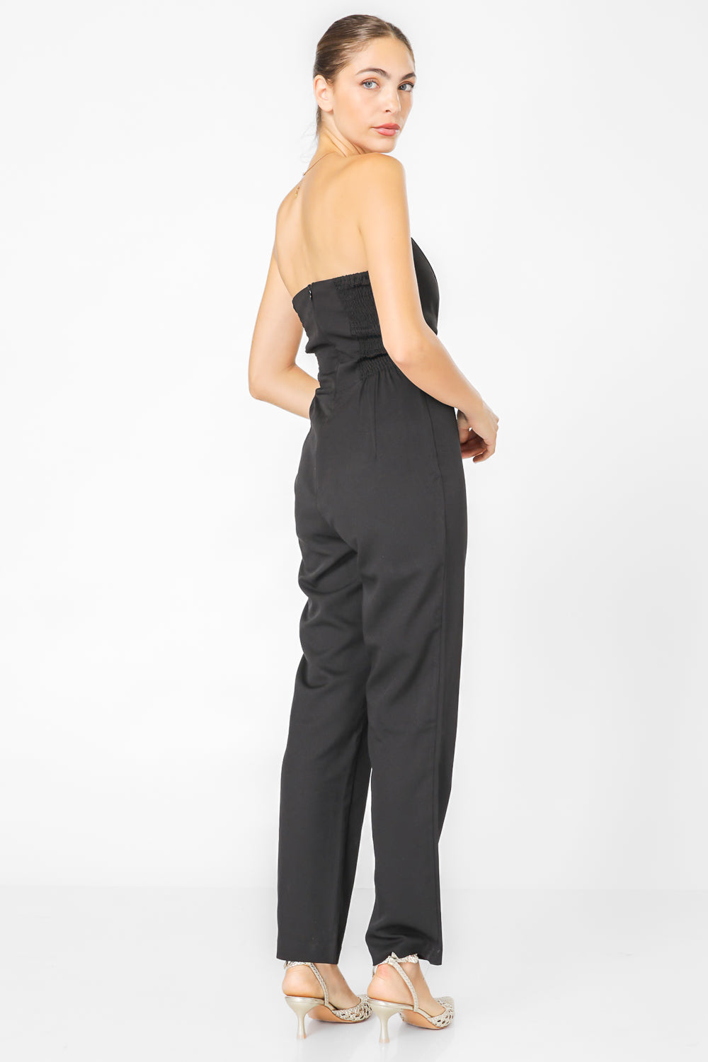 אוברול סטרפלס מבית המותג KENNETH COLE, בגזרה ישרה, על מחשוף V וסגירת רוכסן אחורית.