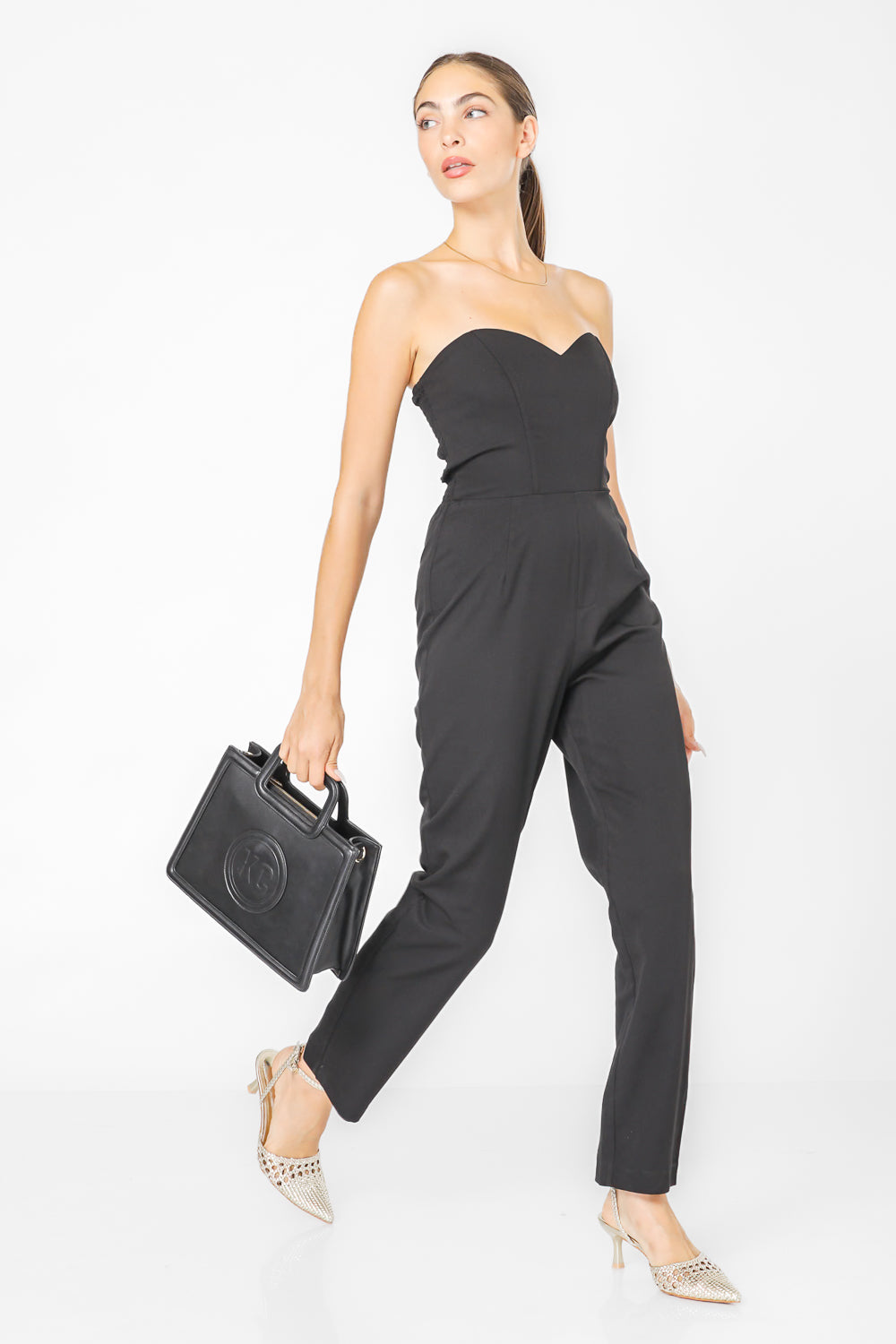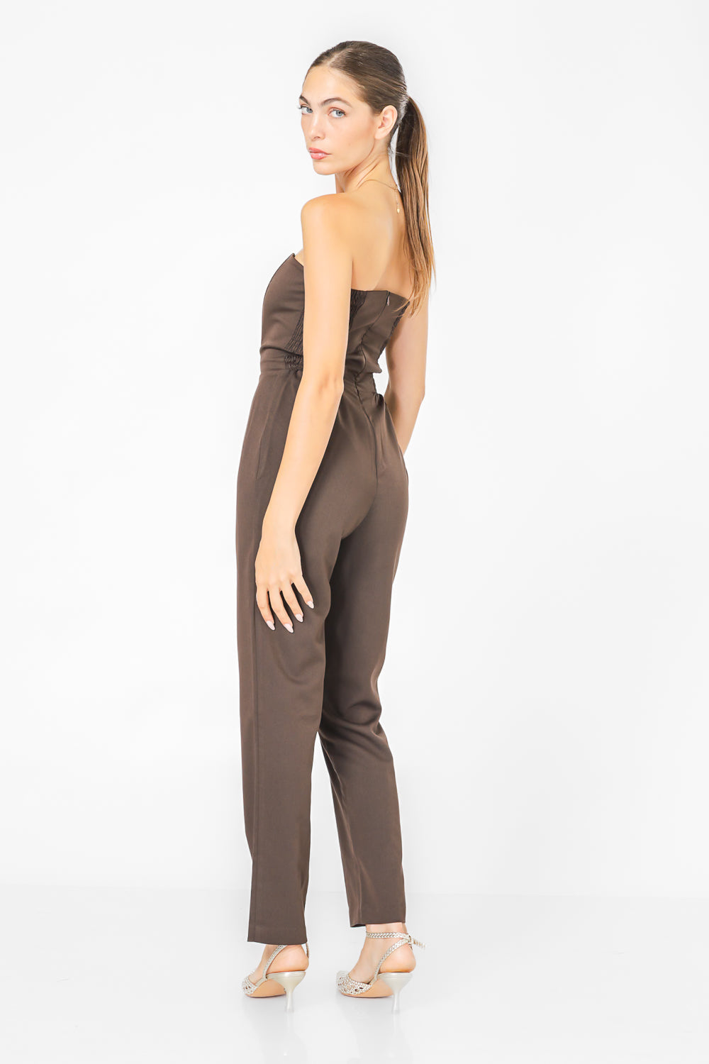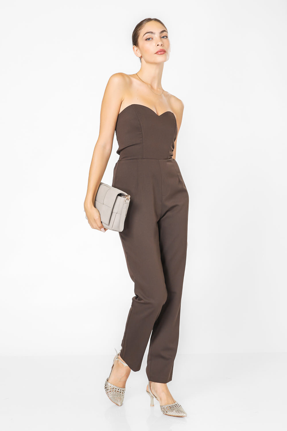 אוברול סטרפלס מבית המותג KENNETH COLE, בגזרה ישרה, על מחשוף V וסגירת רוכסן אחורית.