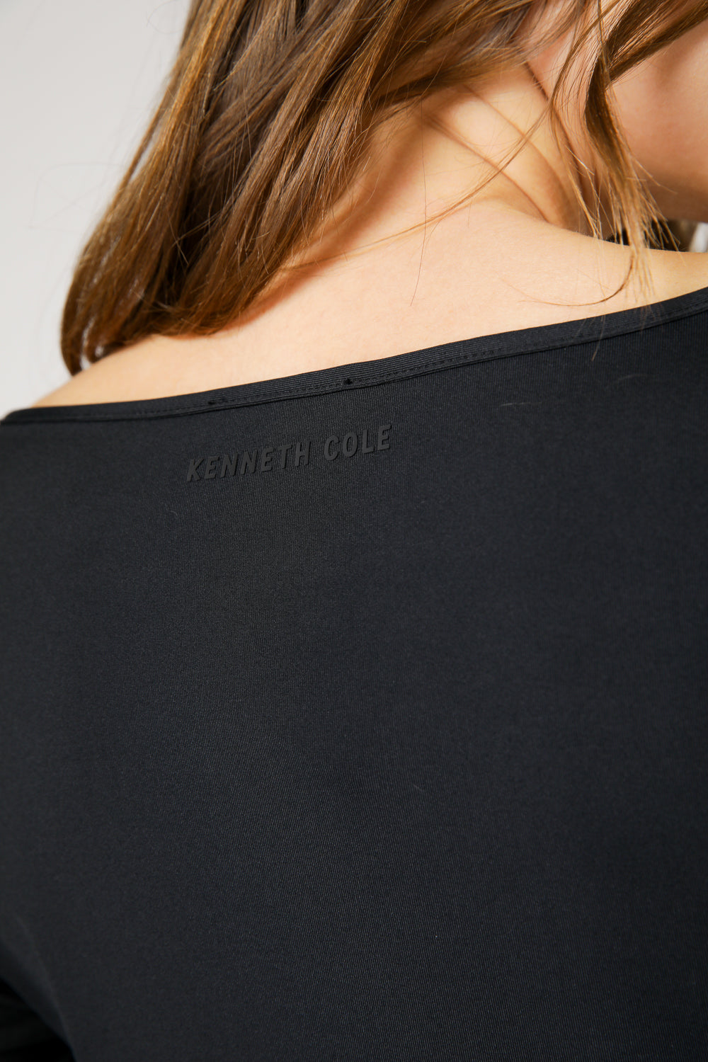 חולצה לנשים מבית המותג KENNETH COLE מבד אלסטי בגזרה צמודה, עם שרוולים ארוכים וצווארון מרובע.