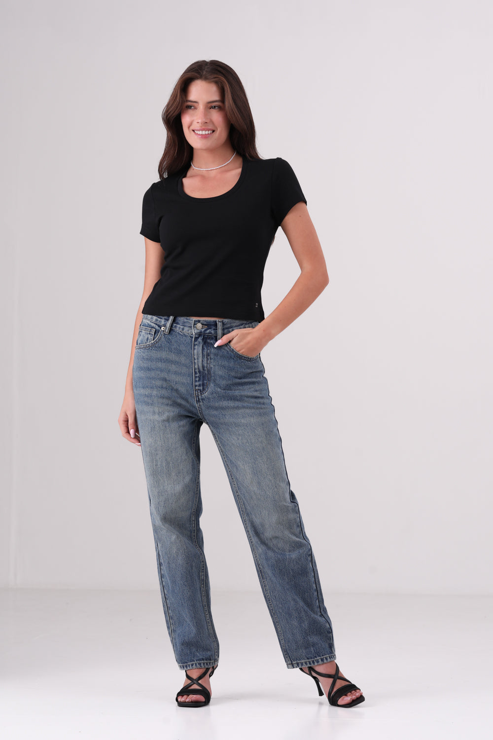 טישירט בייסיק צווארון עגול עמוק