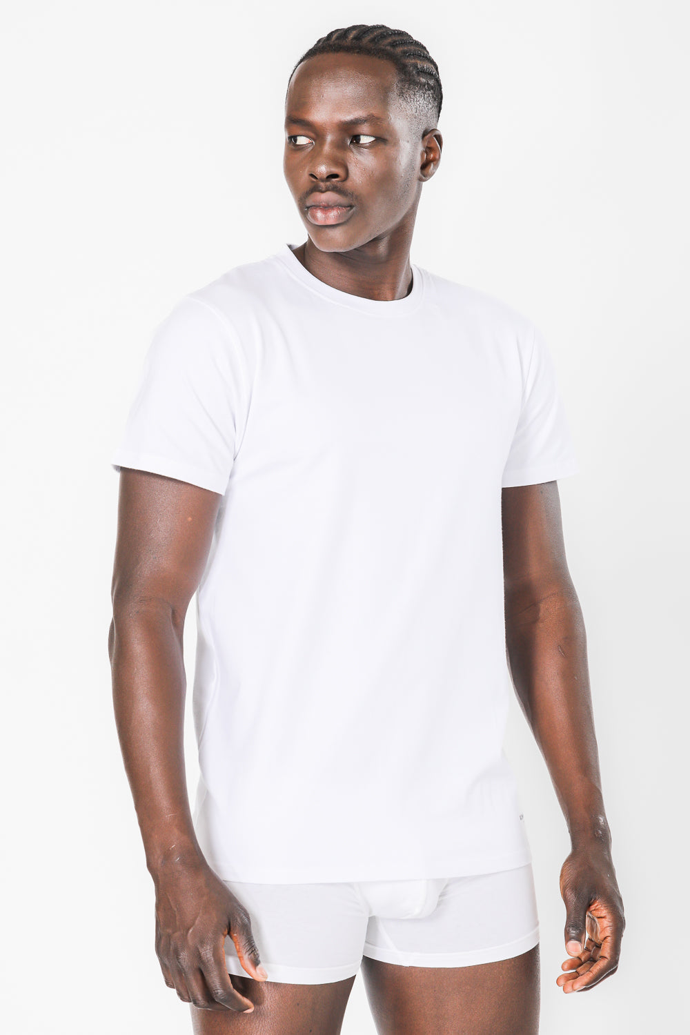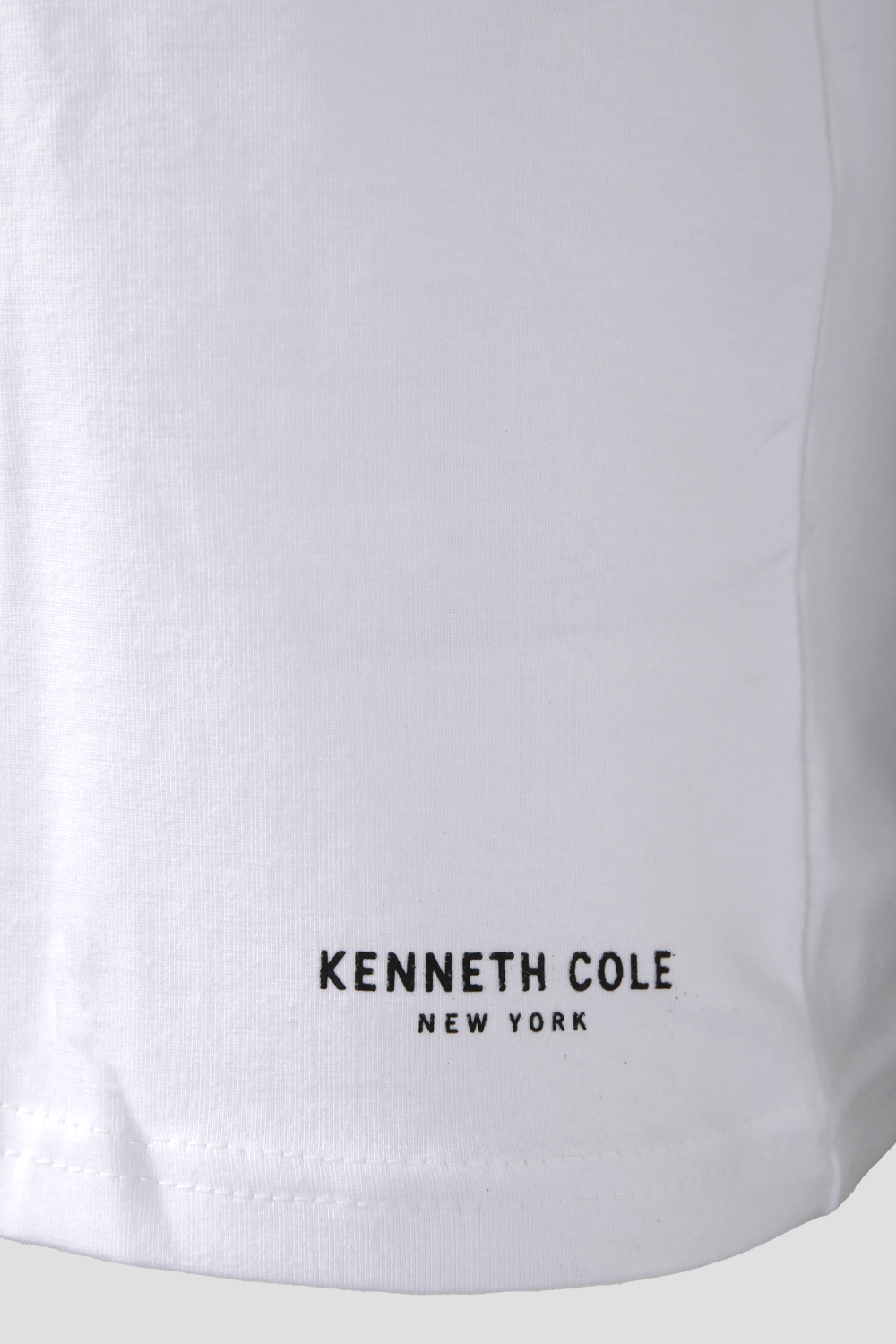 חולצת טישירט בייסיק לבנה מבית המותג האיכותי KENNETH COLE, בגזרת ישרה קאלסית עם שרוולים קצרים וצאוורון עגול.