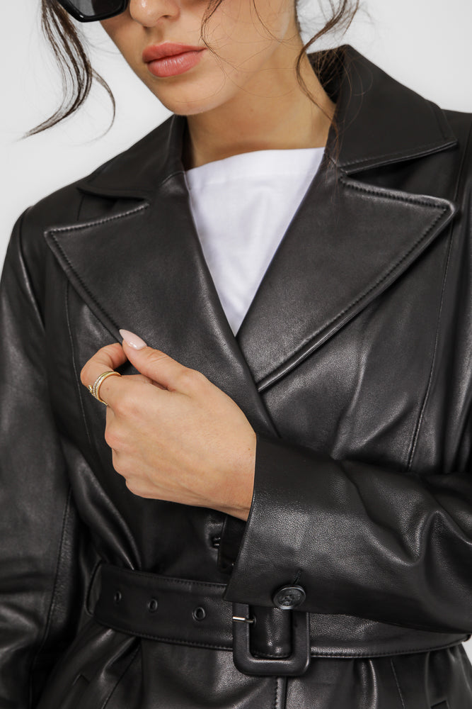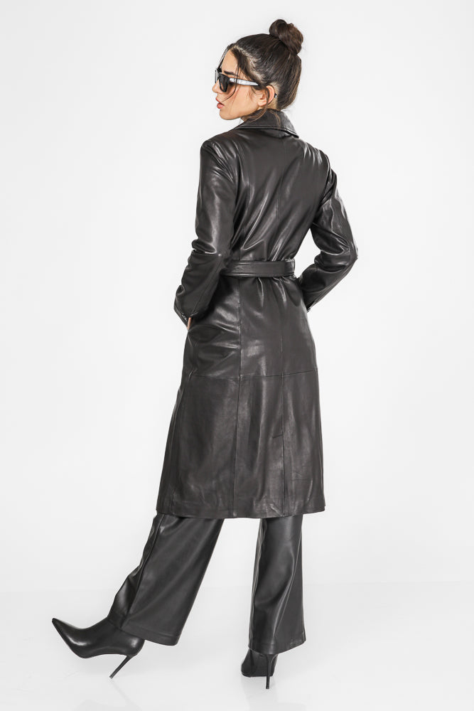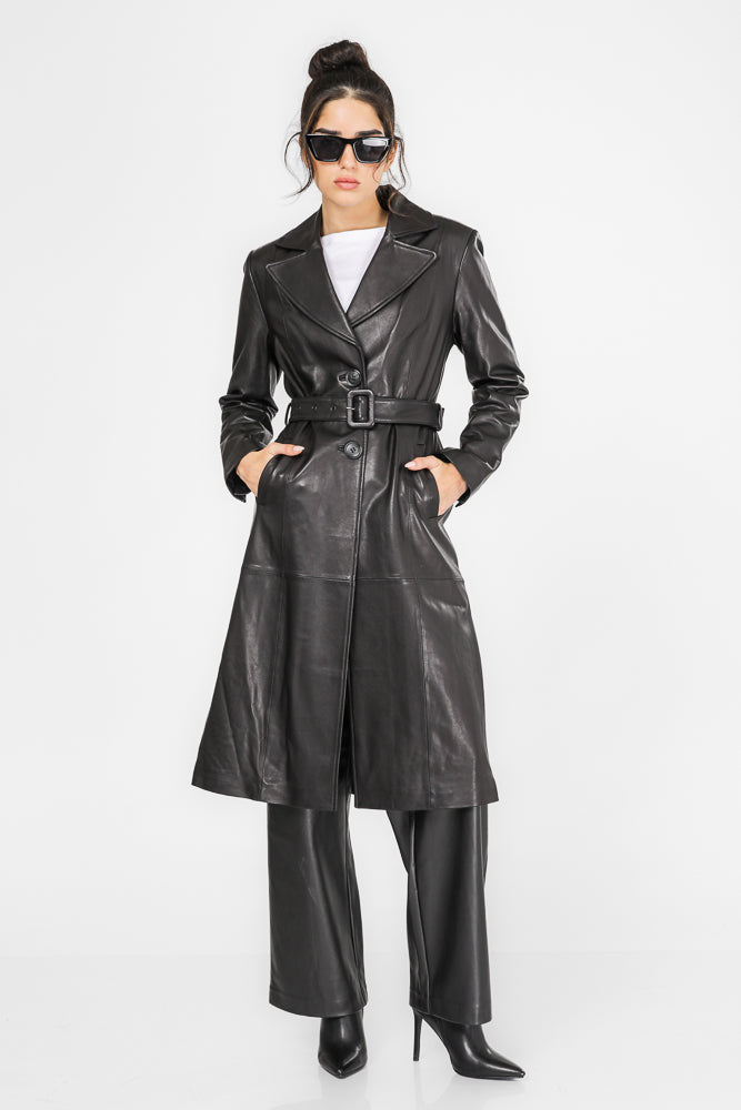 מעיל מבית המותג KENNETH COLE בגזרה ארוכה עם חגורת מותן מתכווננת, כיסים קדמיים וסגירת כפתורים.