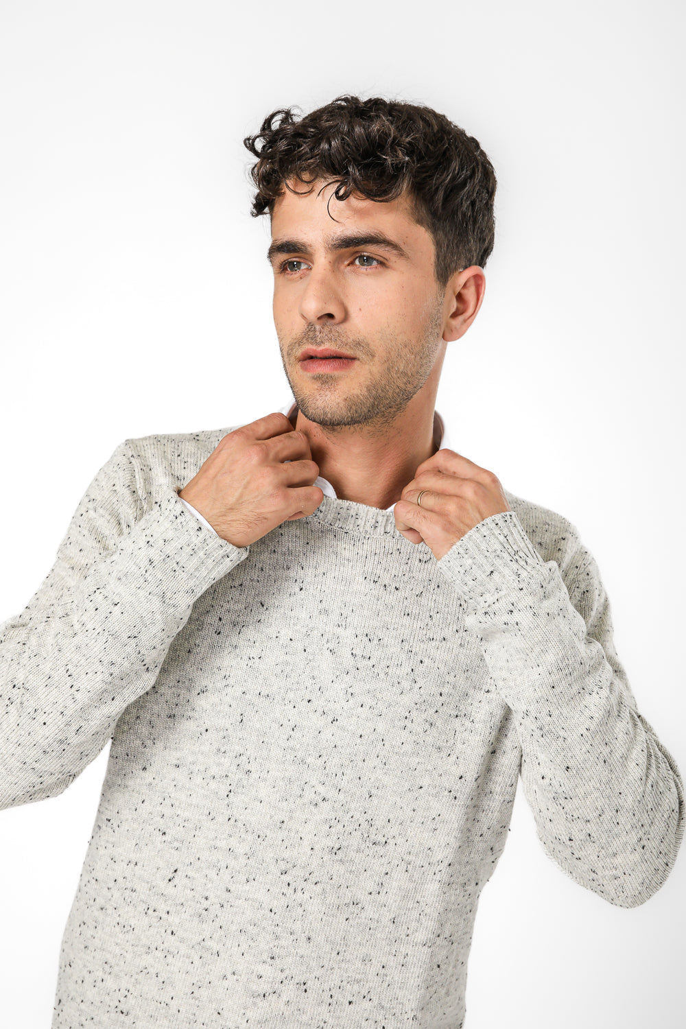 סריג צווארון עגול וטקסטורה בצבע אפור