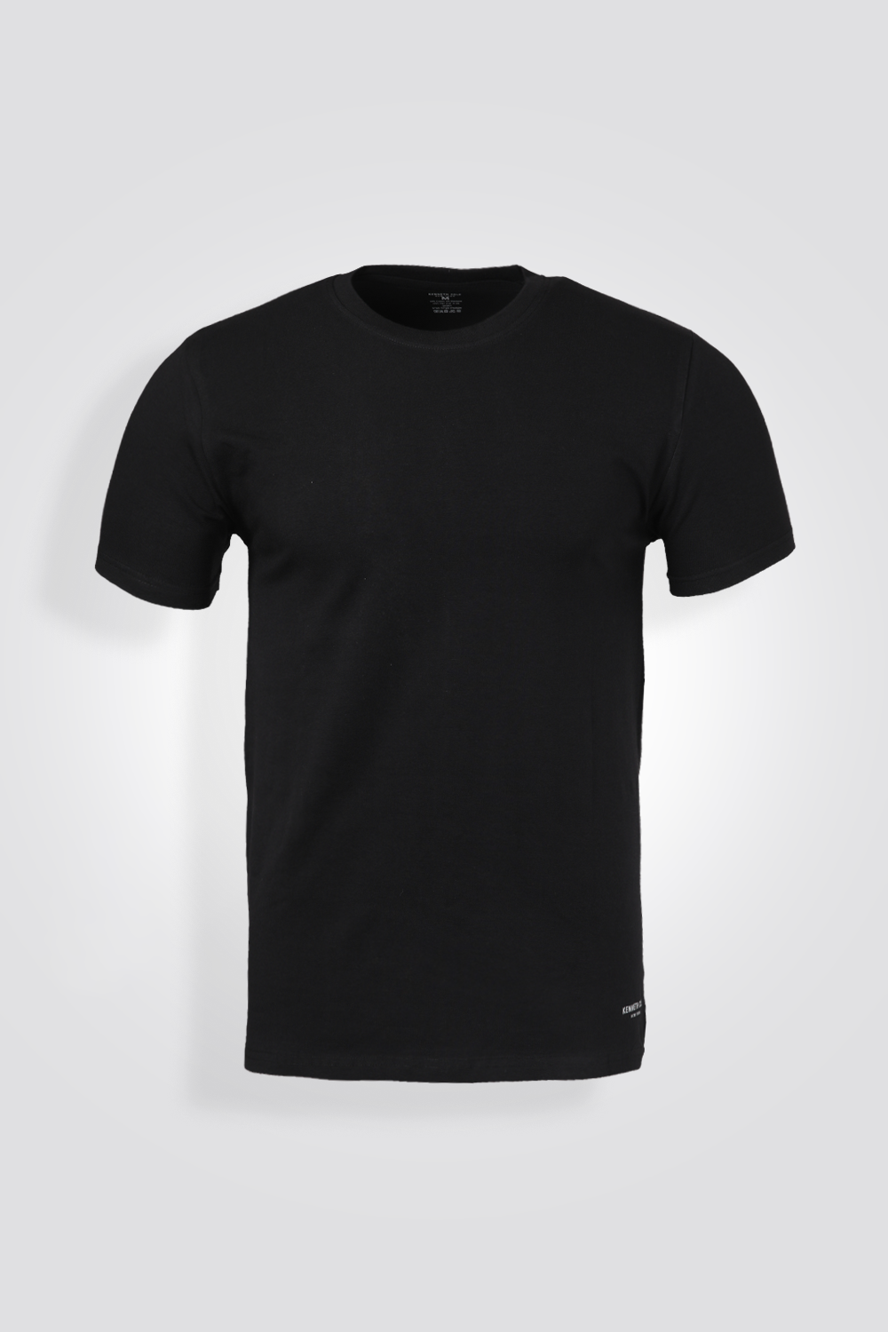 חולצת טישירט בייסיק שחורה מבית המותג האיכותי KENNETH COLE, בגזרת ישרה קאלסית עם שרוולים קצרים וצאוורון עגול.