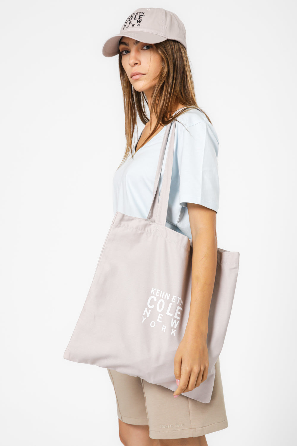 תיק שק קנבס מבית המותג היוקרתי KENNETH COLE, עם לוגו המותג בעיצוב קלאסי, בסגנון פתוח ללא סגירה וללא כיסים.