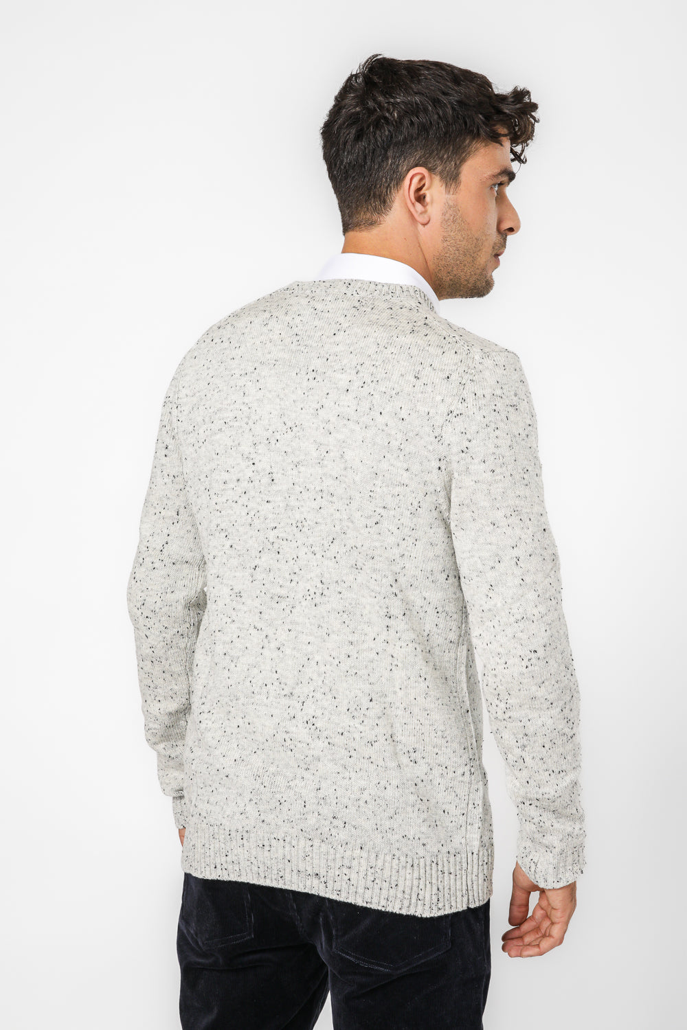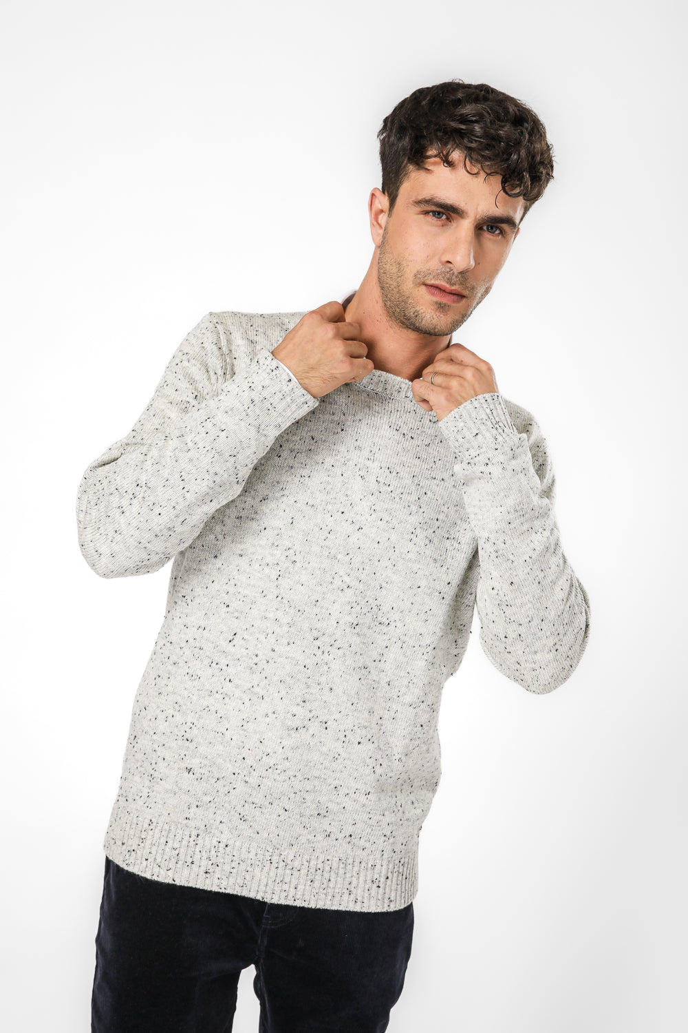 סריג צווארון עגול וטקסטורה בצבע אפור