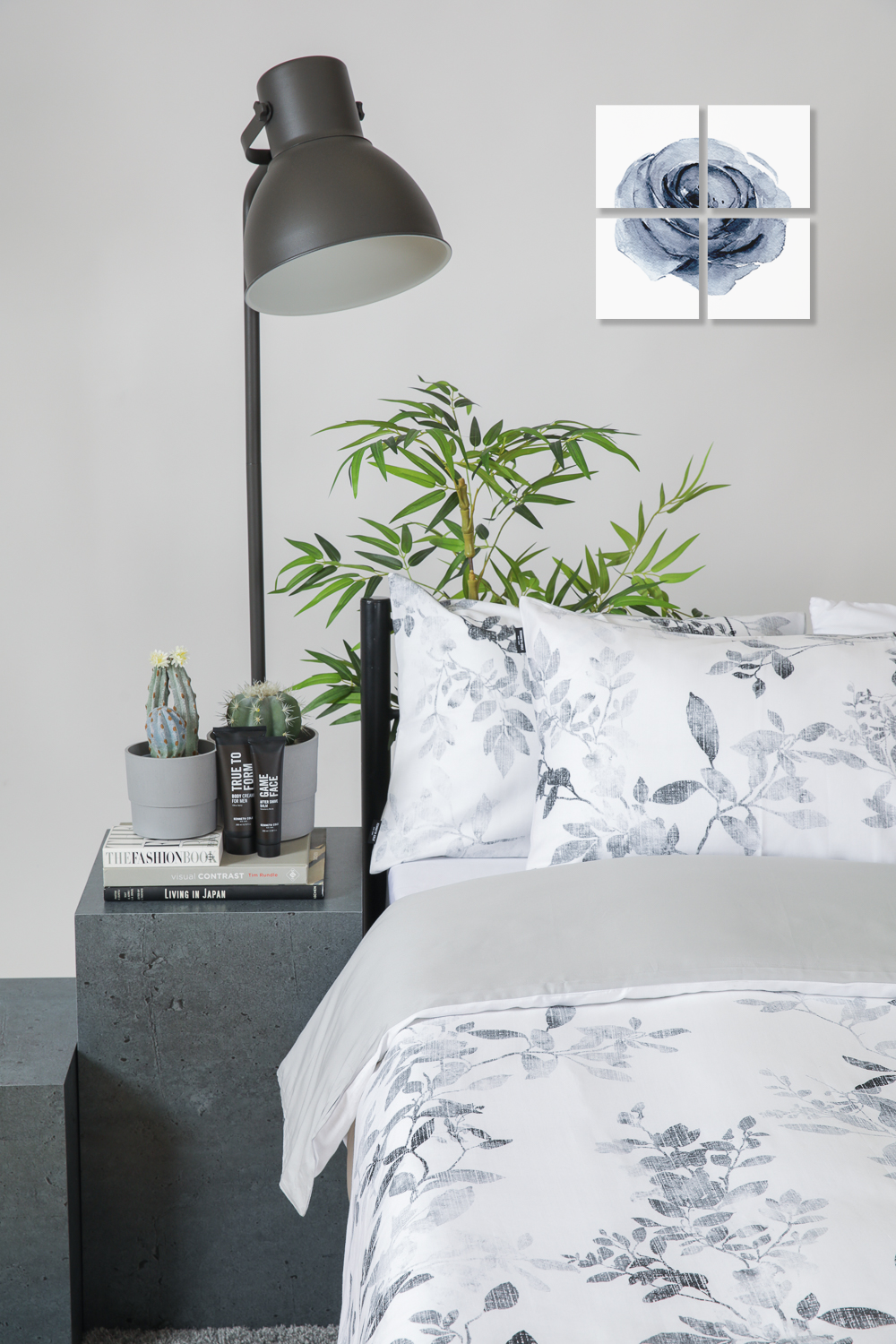 סט מצעים 5 חלקים מיטה מתכווננת כותנה סאטן דגם B&W Leaves מבית המותג KENNETH COLE.