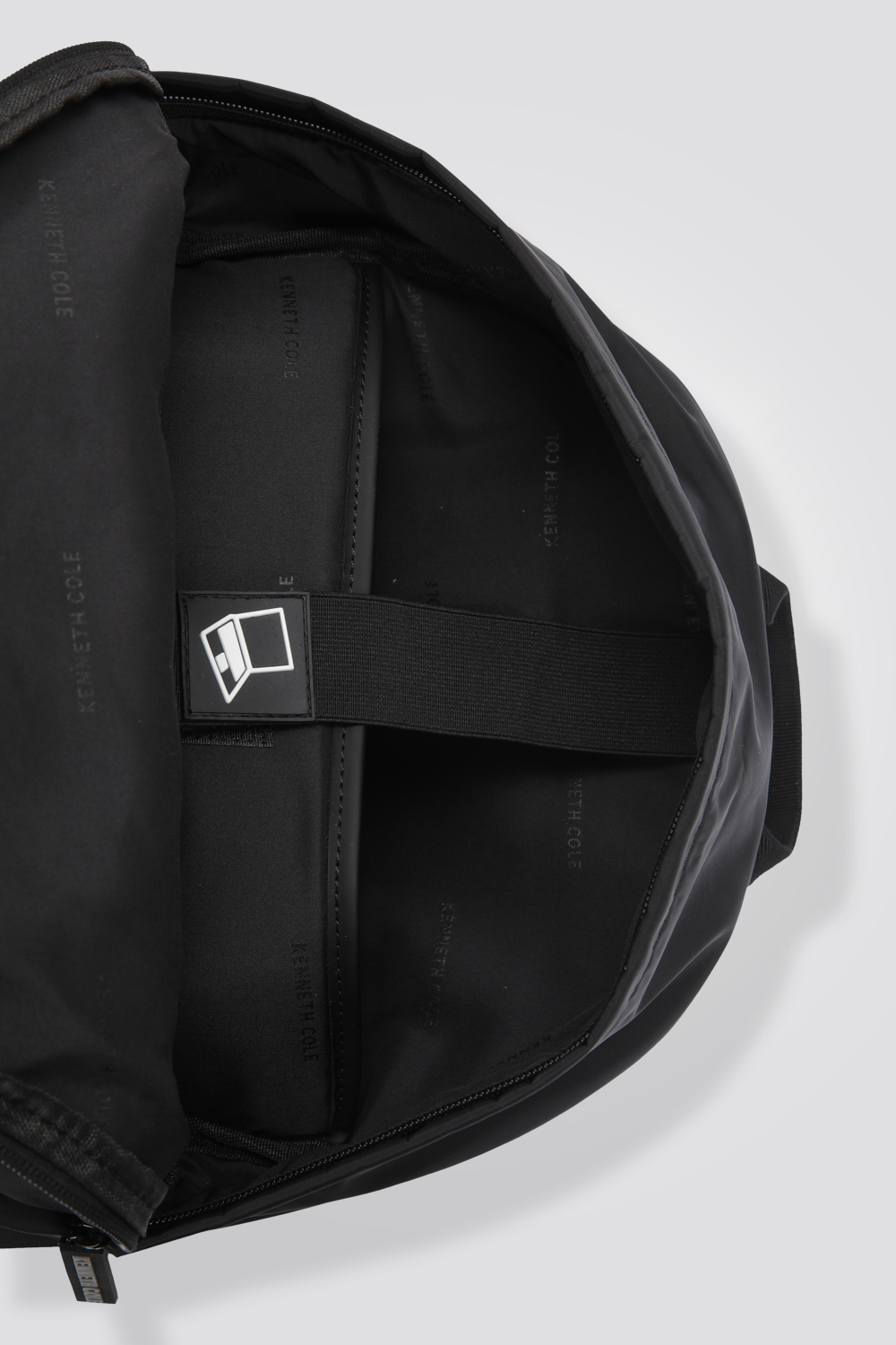 תיק גב מבית המותג KENNETH COLE, בצבע שחור, עם תא ראשי שבתוכו תא ללפטופ וסגירת רוכסן, ועוד תא חיצוני קטן וסגירת רוכסן, שני רצועות גב ולוגו המותג.