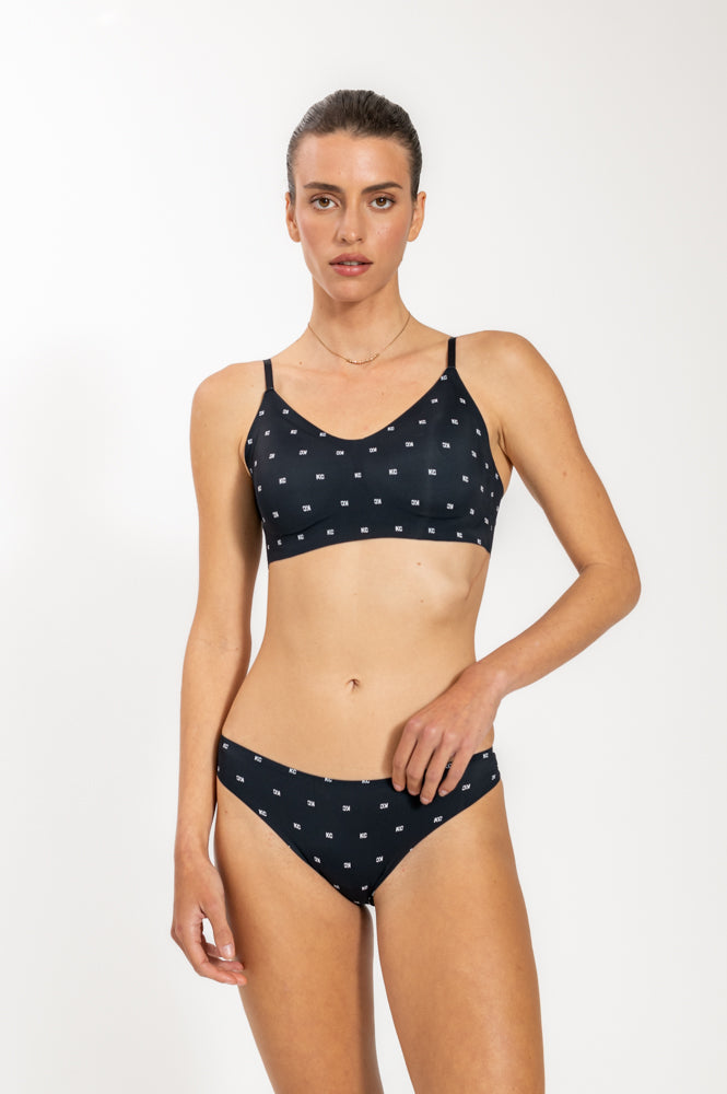 תחתון היפסטר לייזר קאט מונוגרם בצבע שחור