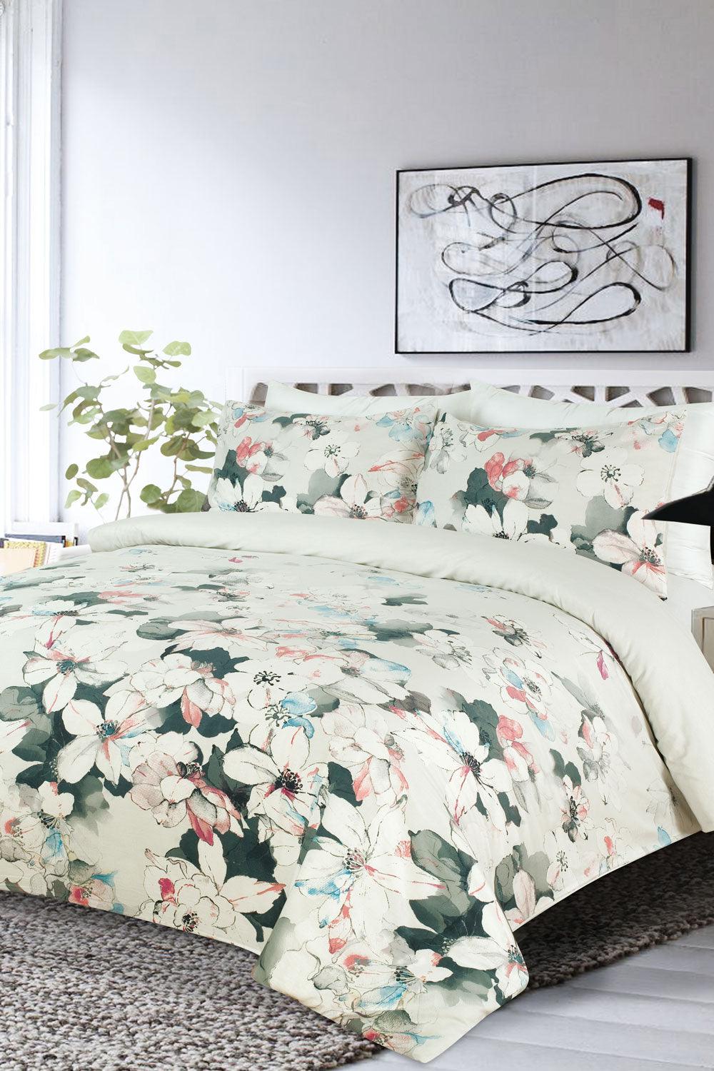 סט מצעים זוגי רחב 180/200 ס"מ כותנה סאטן דגם Blossom