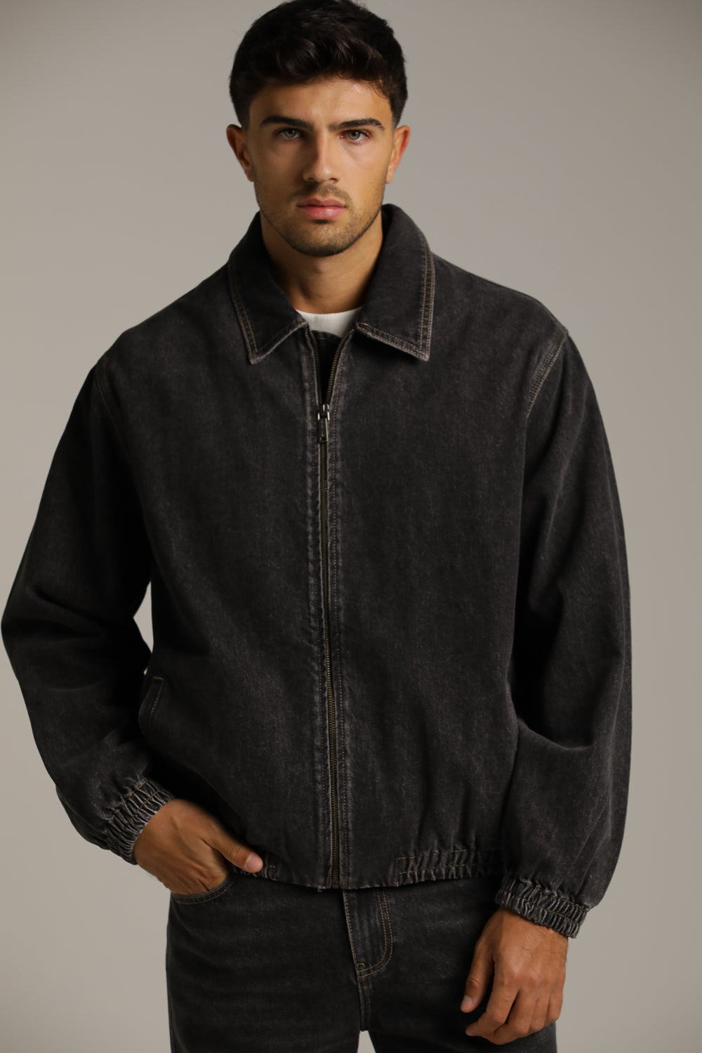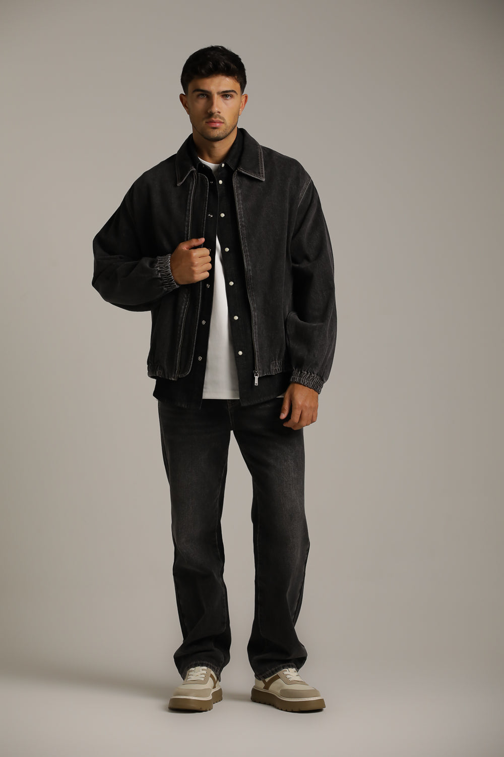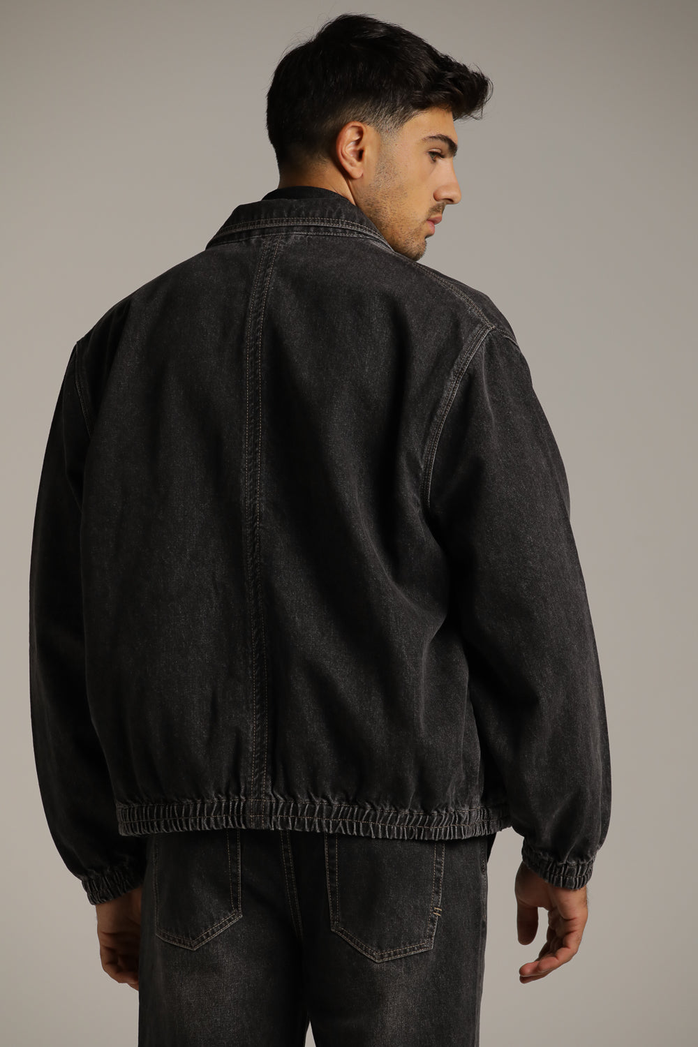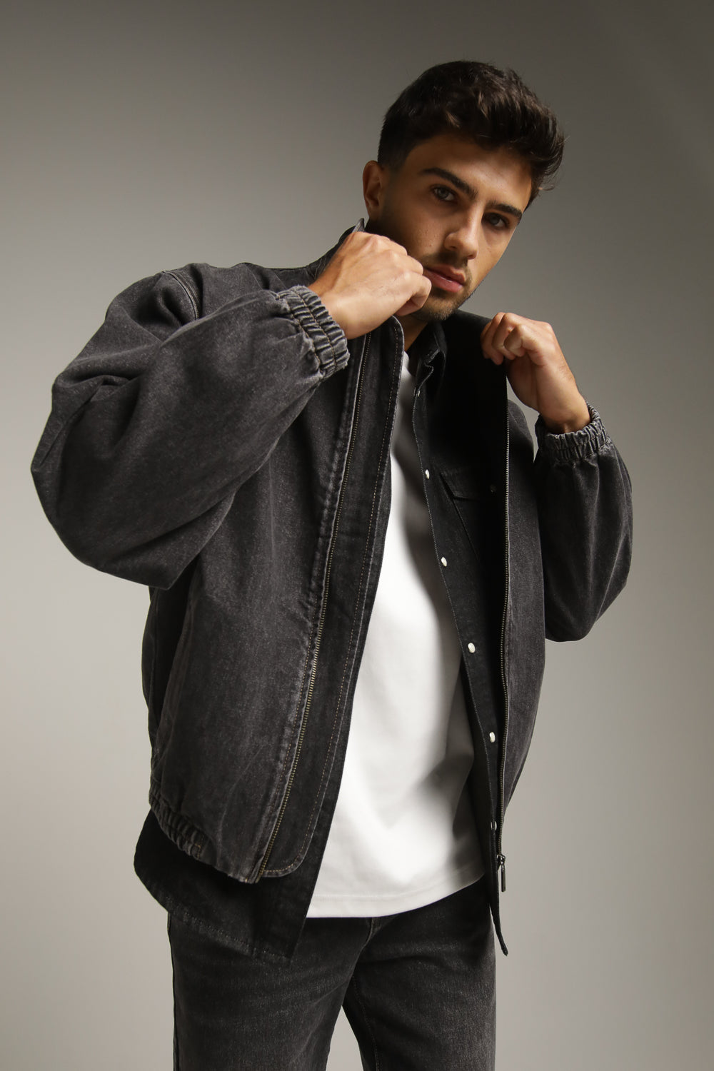 ג'קט ג'ינס שחור במראה שטוף בגזרת בומבר | קנת קול