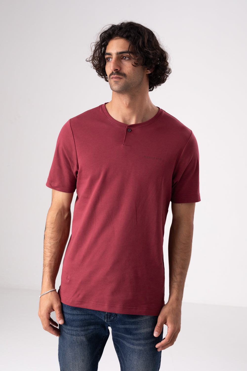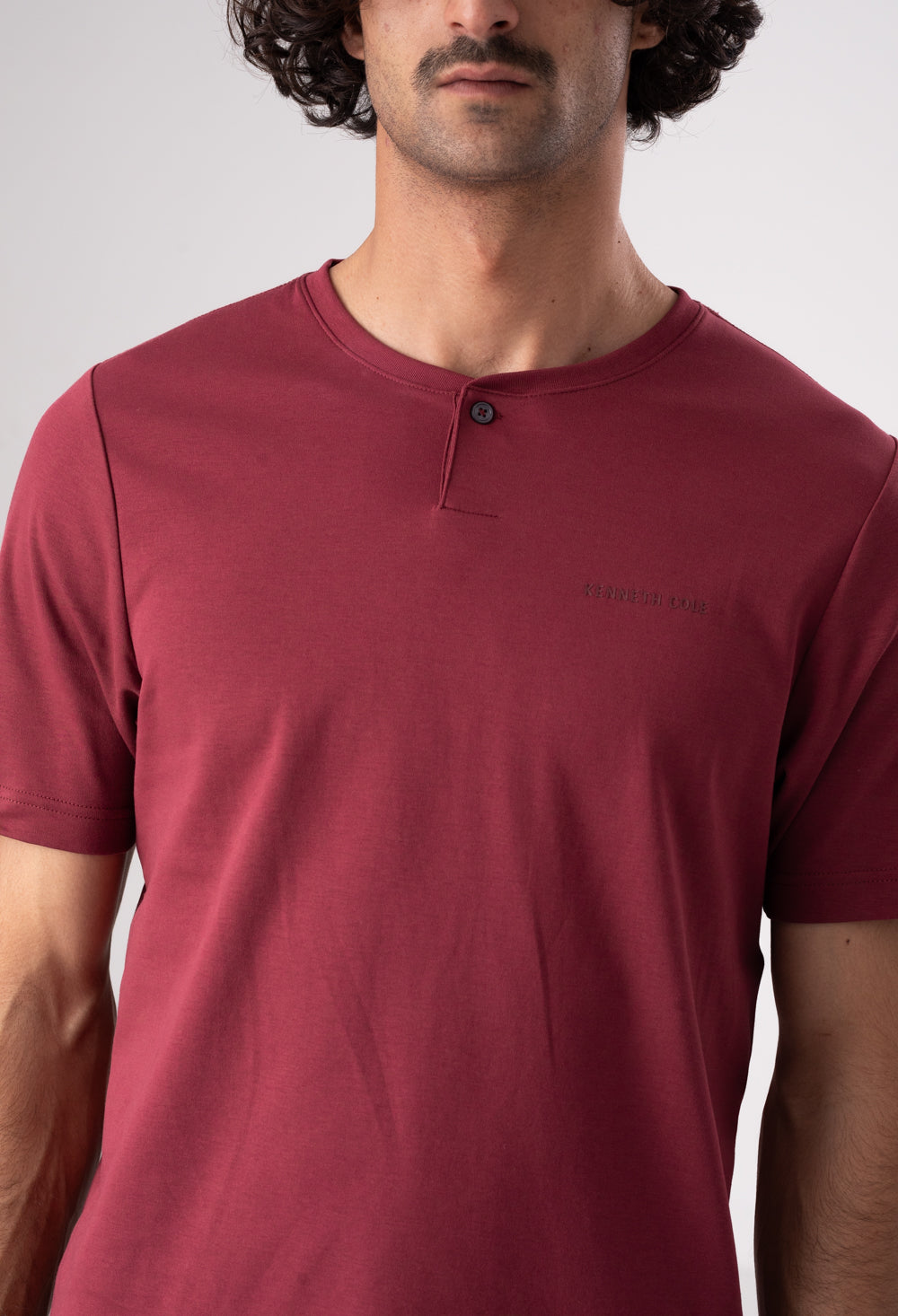 טישירט לגברים מבית המותג KENNETH COLE, עשויה בד כותנה רך במיוחד, עם שרוולים קצרים וצווארון עגול בשילוב כפתור.
