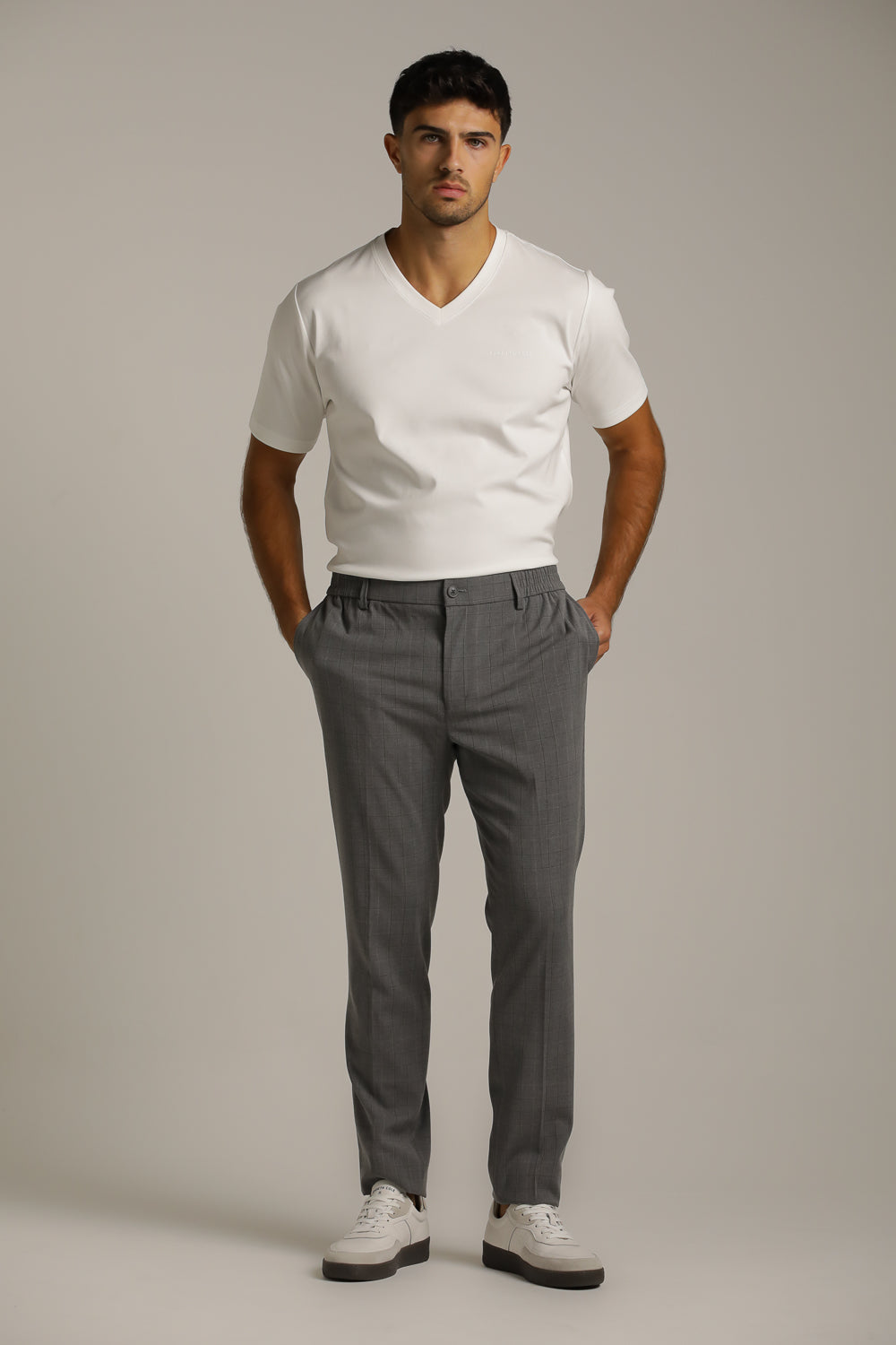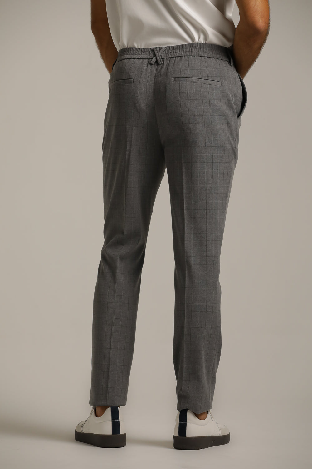 מכנסי סמי פורמל מבית המותג KENNETH COLE לגברים בצבע אפור, במראה קלאסי המשלב בין אלגנט למראה יומיומי, מעוצבים בסגנון משובץ עדין, בעלי גומי אלסטי במותן, כפתור ורוכסן לפתיחה וסגירה וכיסים בצדדים.