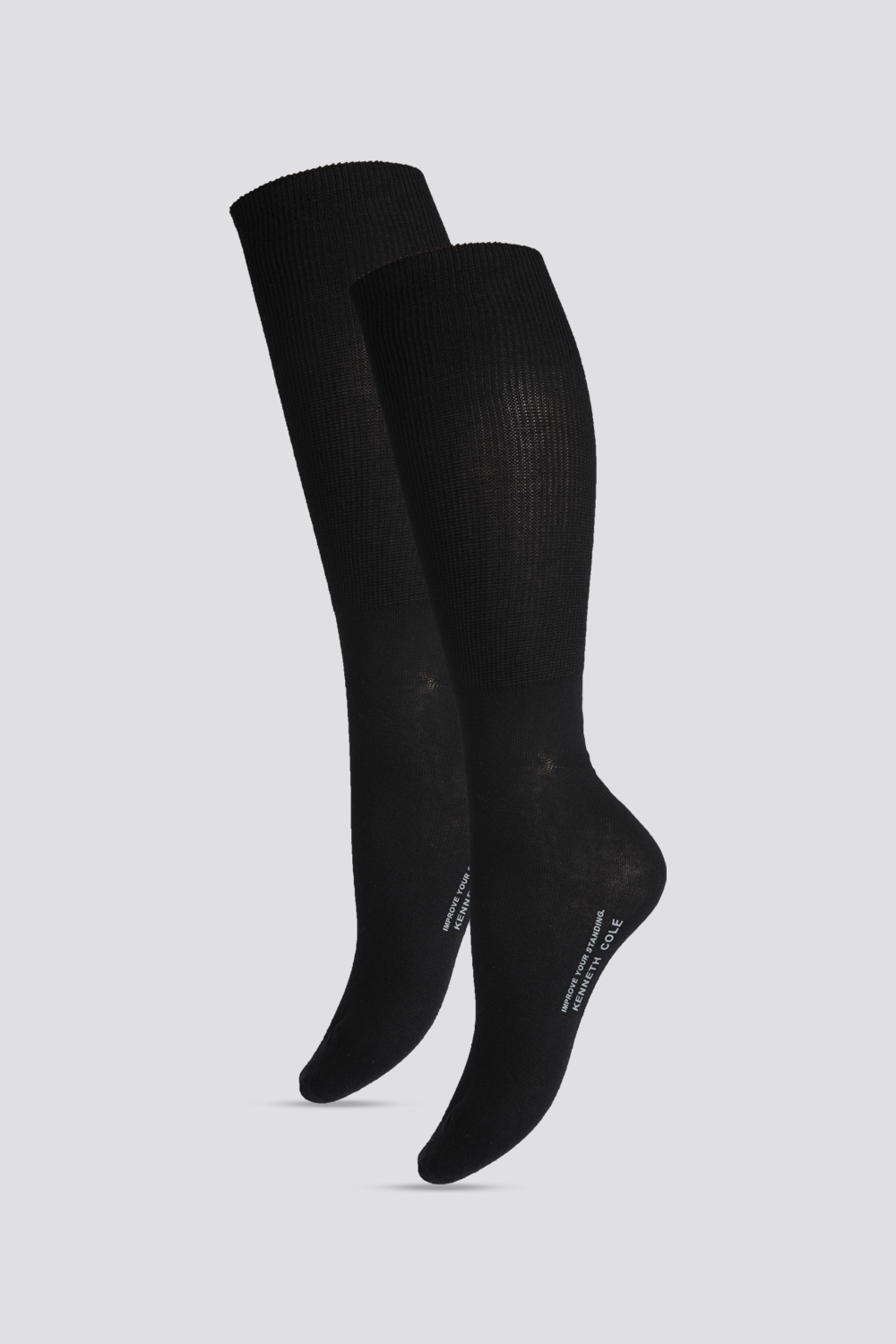 מארז גרביים לגברים מבית המותג KENNETH COLE, הכולל 2 זוגות גרביים גבוהים בצבע שחור.