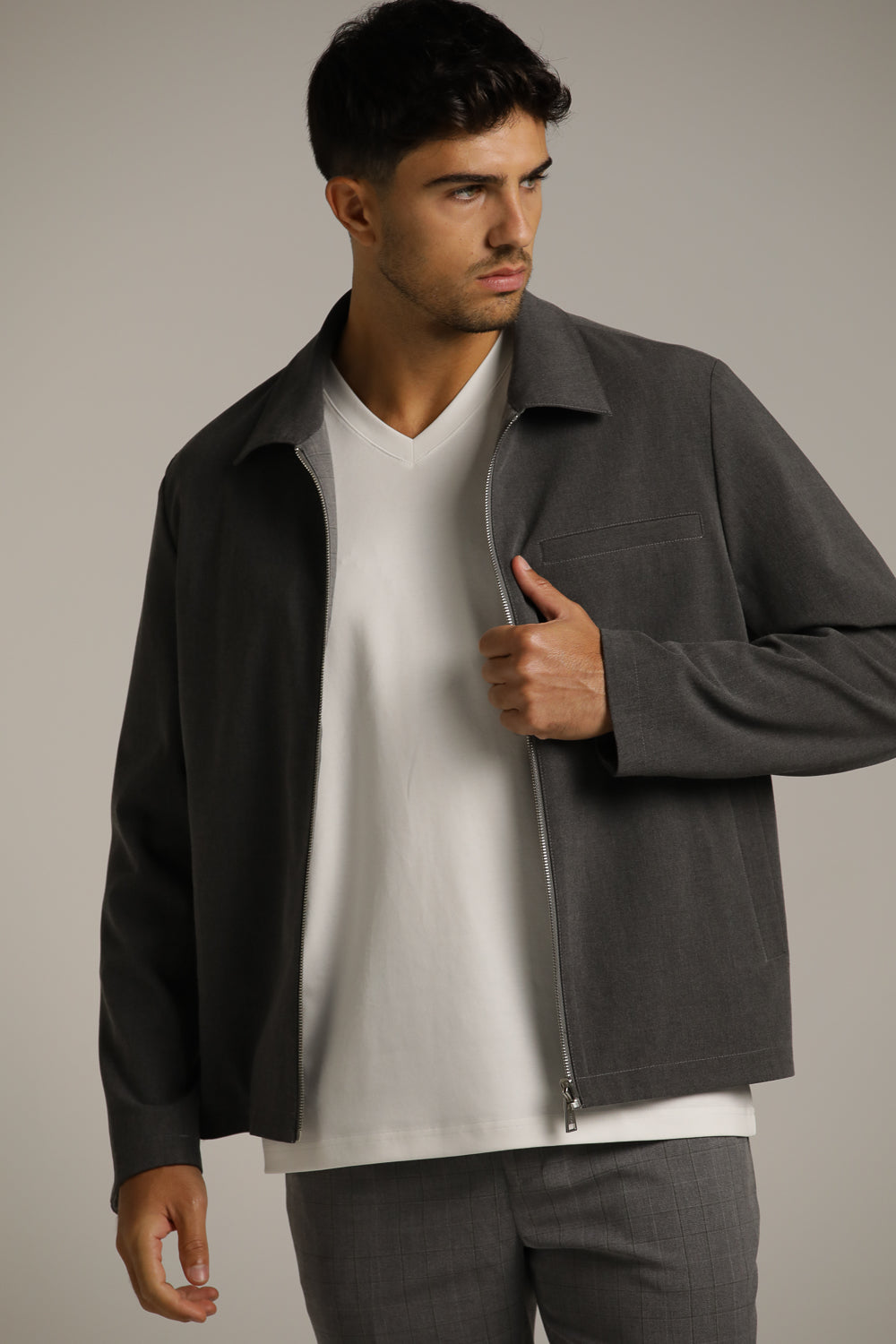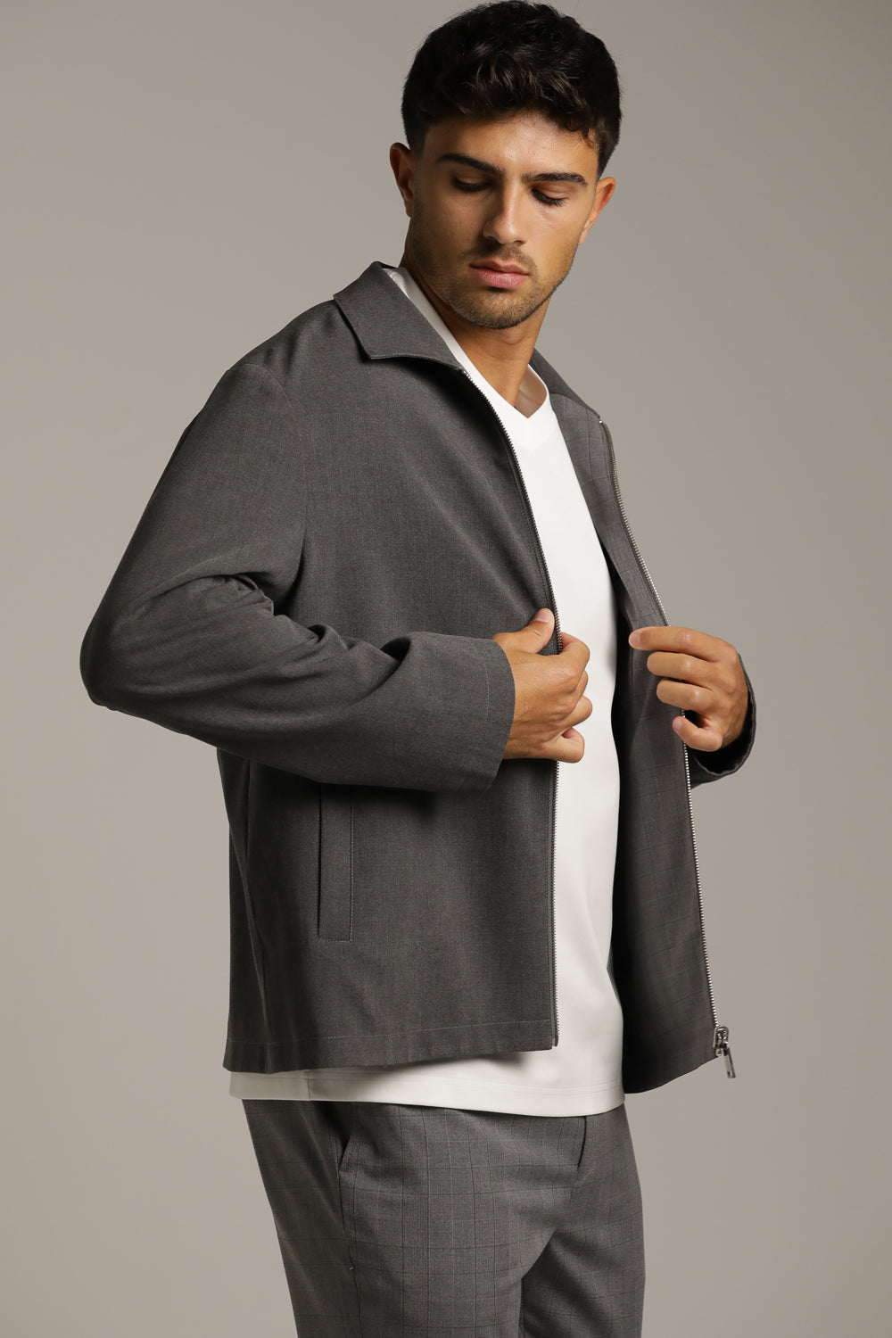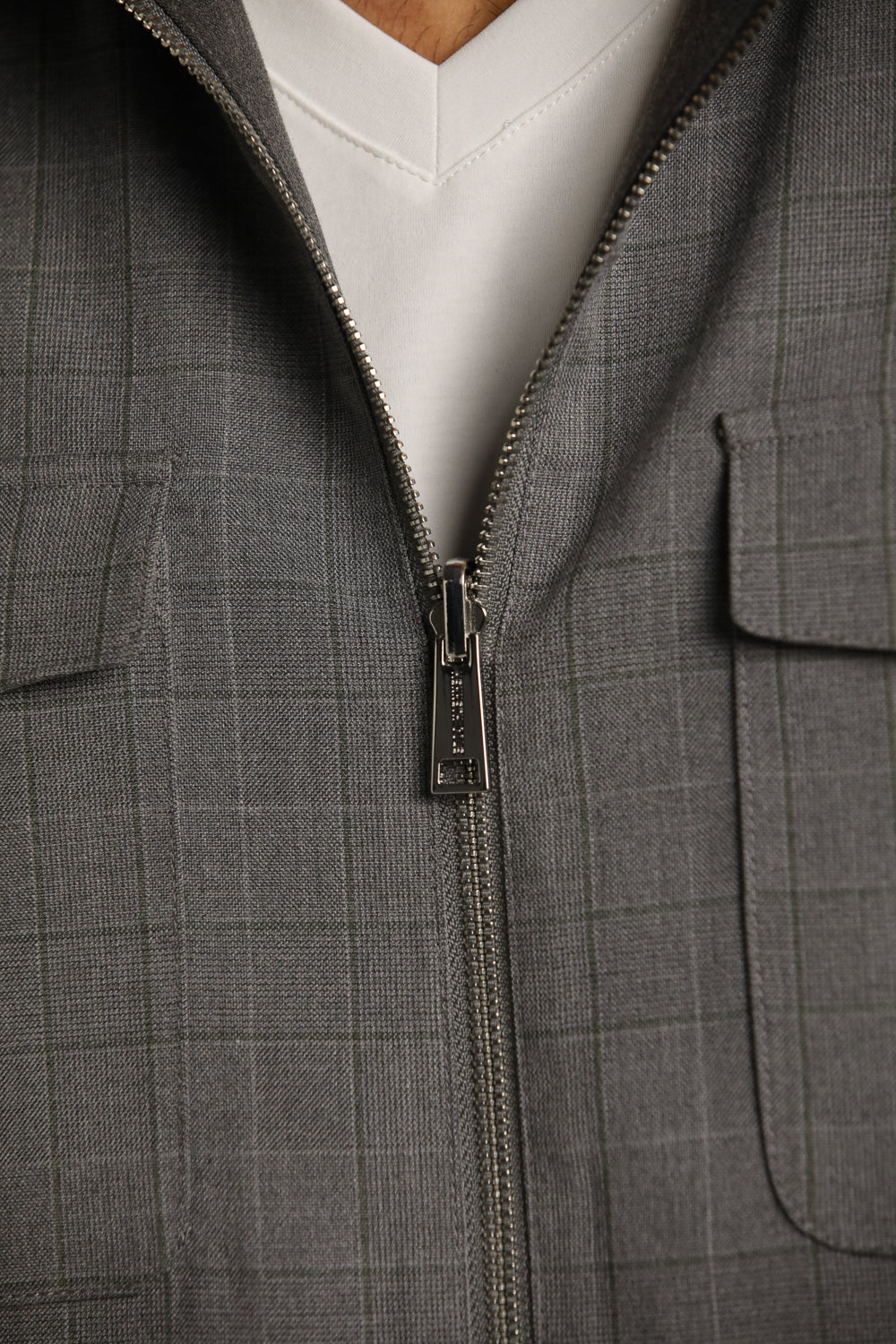 ג'קט דו צדדי מבית המותג KENNETH COLE לגברים בצבע אפור, מעוצב במראה אלגנטי משני צדדיו, בגזרה משוחררת וקלילה, באורך המותן, בעל שרוולים ארוכים, צווארון מתקפל, רוכסן לפתיחה וסגירה וכיסים בשני צדדי הג'קט.