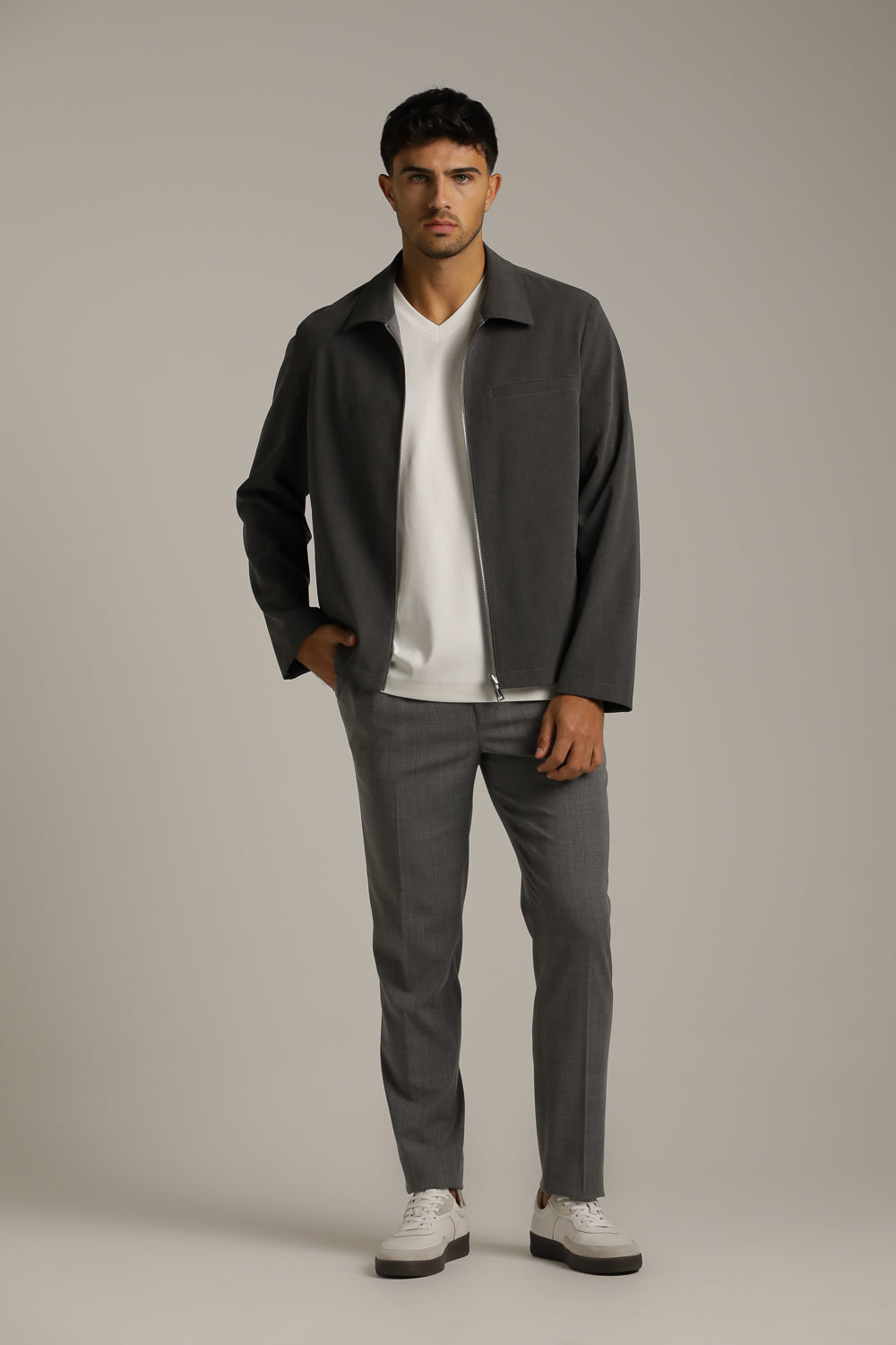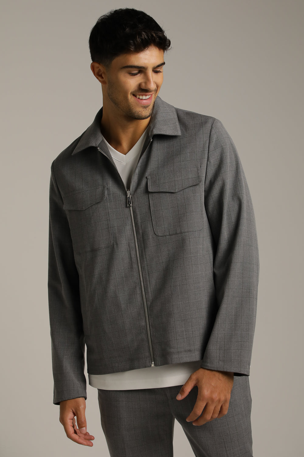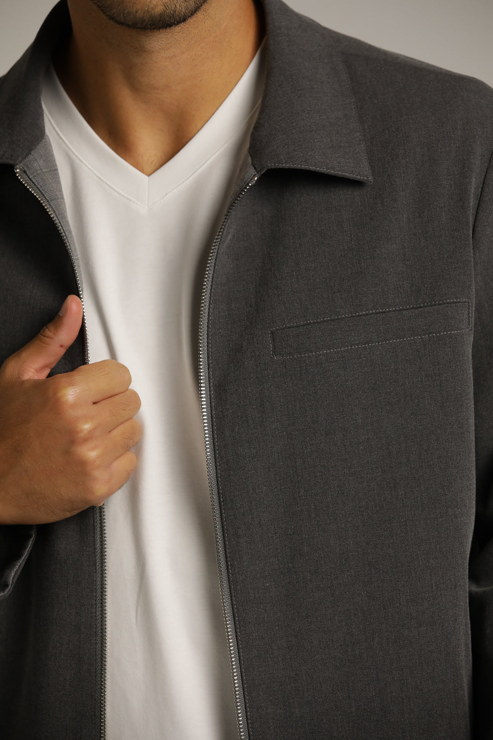 ג'קט דו צדדי מבית המותג KENNETH COLE לגברים בצבע אפור, מעוצב במראה אלגנטי משני צדדיו, בגזרה משוחררת וקלילה, באורך המותן, בעל שרוולים ארוכים, צווארון מתקפל, רוכסן לפתיחה וסגירה וכיסים בשני צדדי הג'קט.