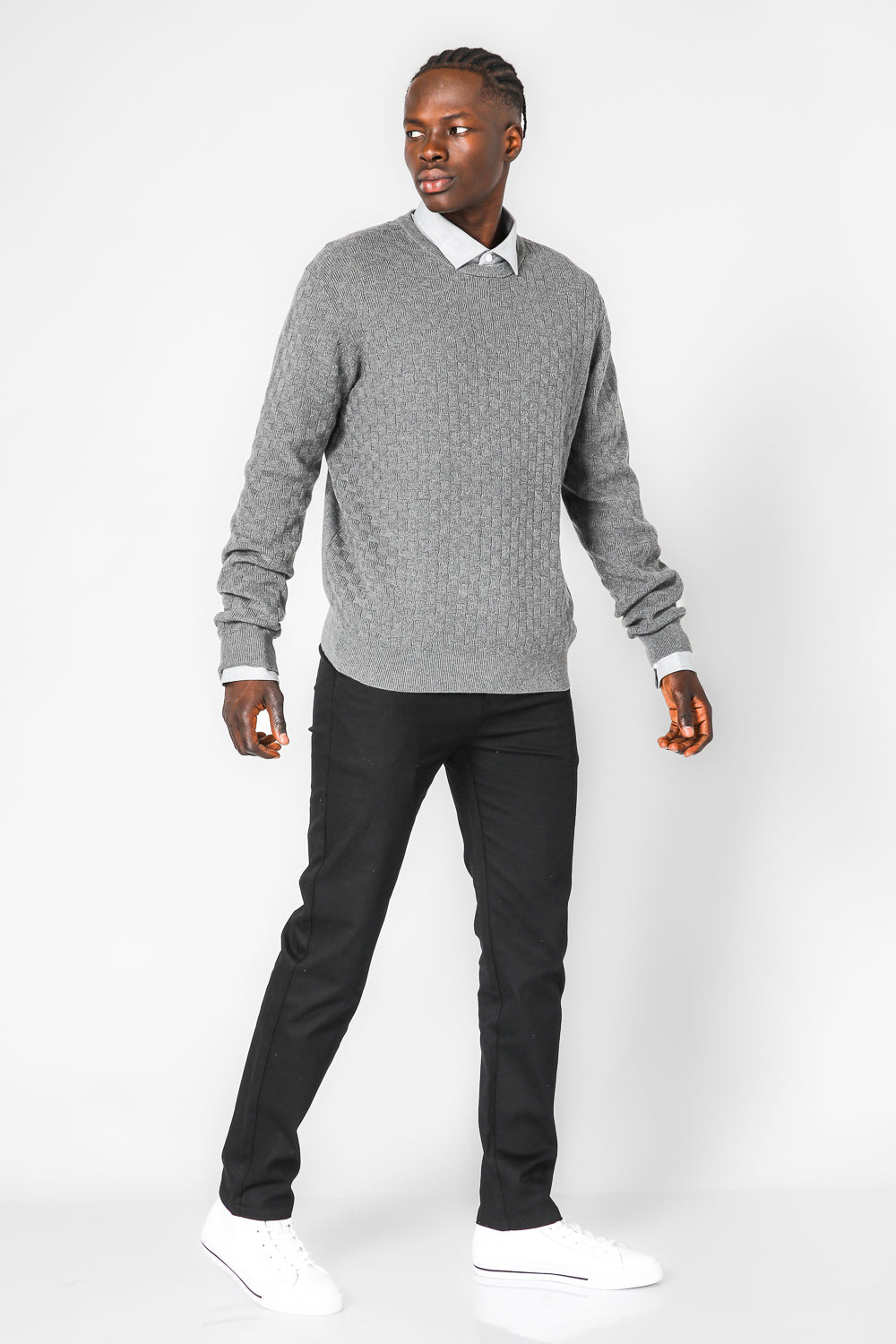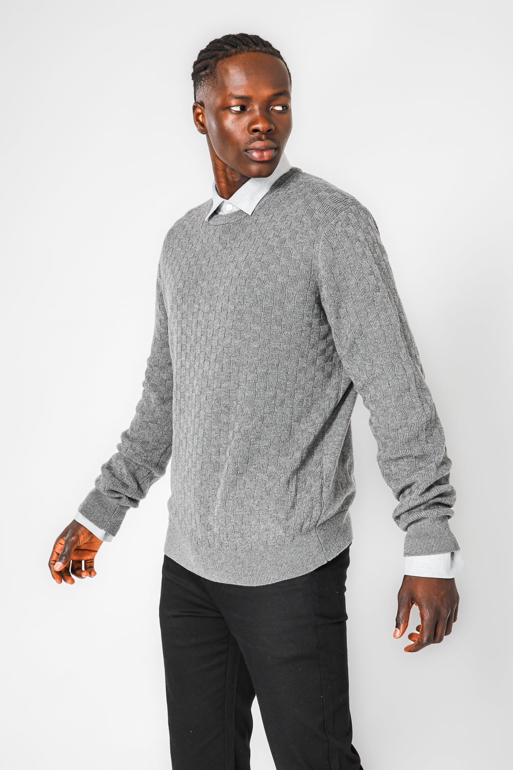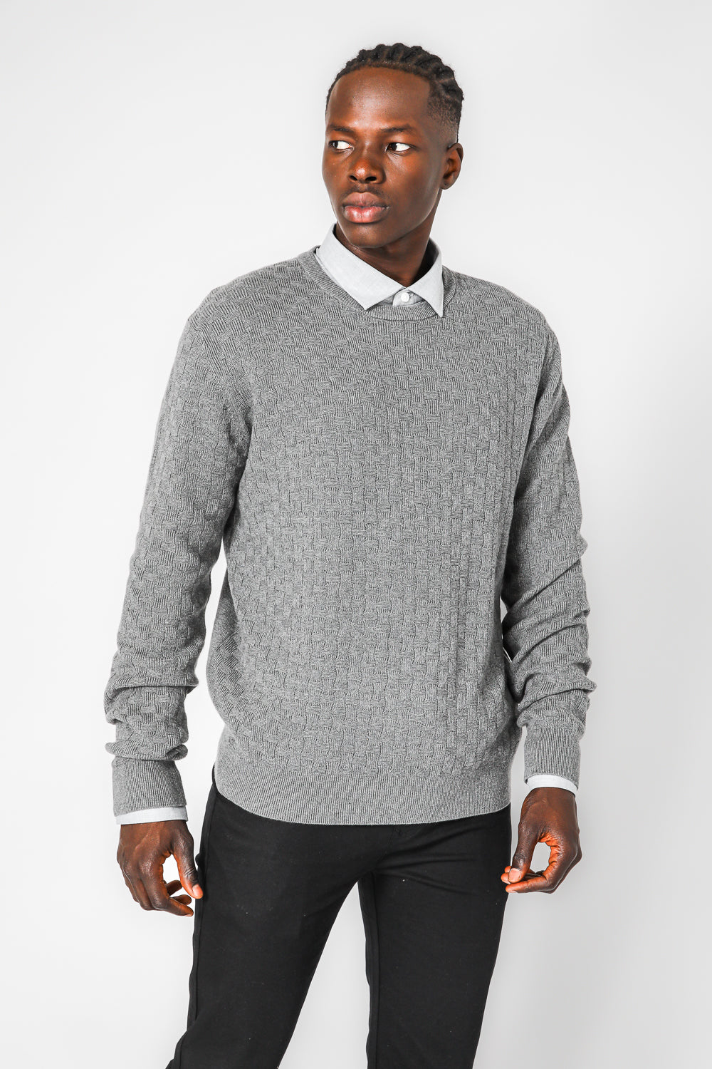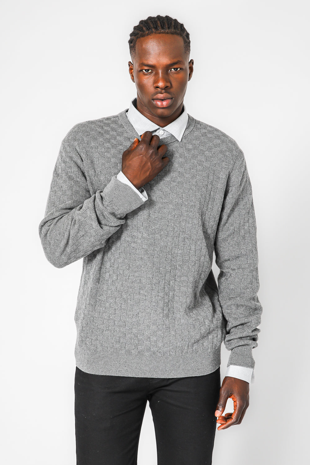 סריג טקסטורה קריס קרוס בצבע אפור