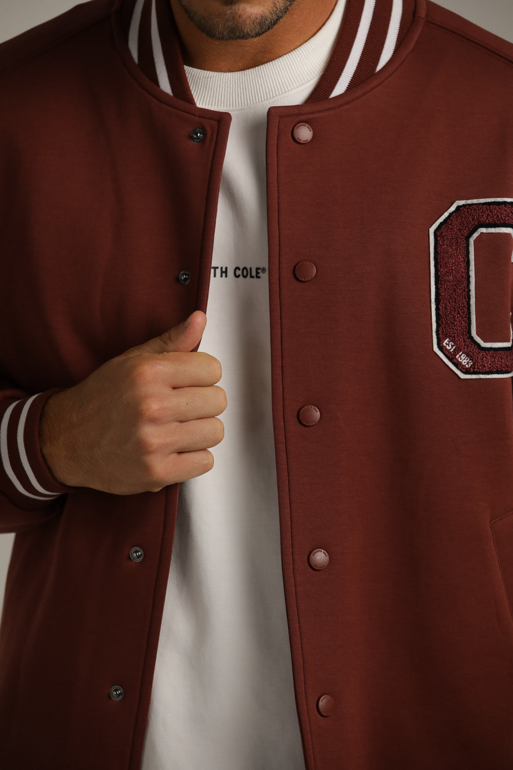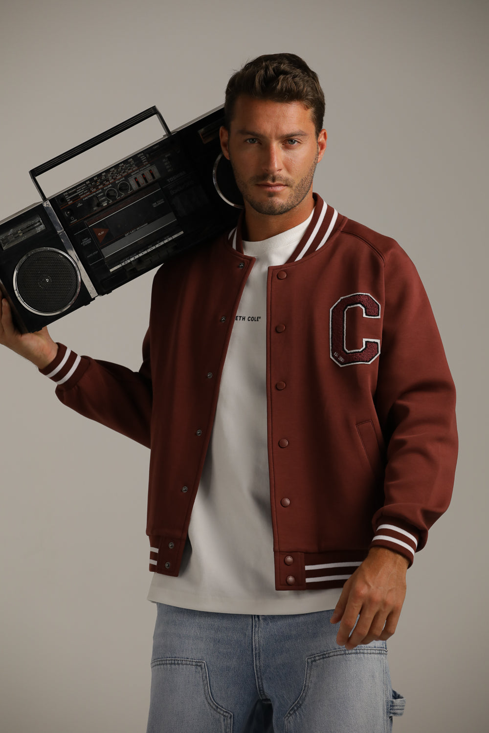 ג'קט מבית המותג KENNETH COLE לגברים בצבע בורדו, עשוי מבד אינטרלוק איכותי ונעים למגע, בגזרת רגלן מחמיאה עם כתפיים משופלות, בעיצוב סטריט סטייל המשלב טאץ' מודרני ונוחות, מכיל תיקתקים מקדימה לסגירה, לוגו המותג רקום בגב, כיסים בצדדים, פאץ' לוגו המותג רקום מקדימה וסיומת ריב ספורטיבי מפוספס בצווארון, השרוולים והמכפלת.