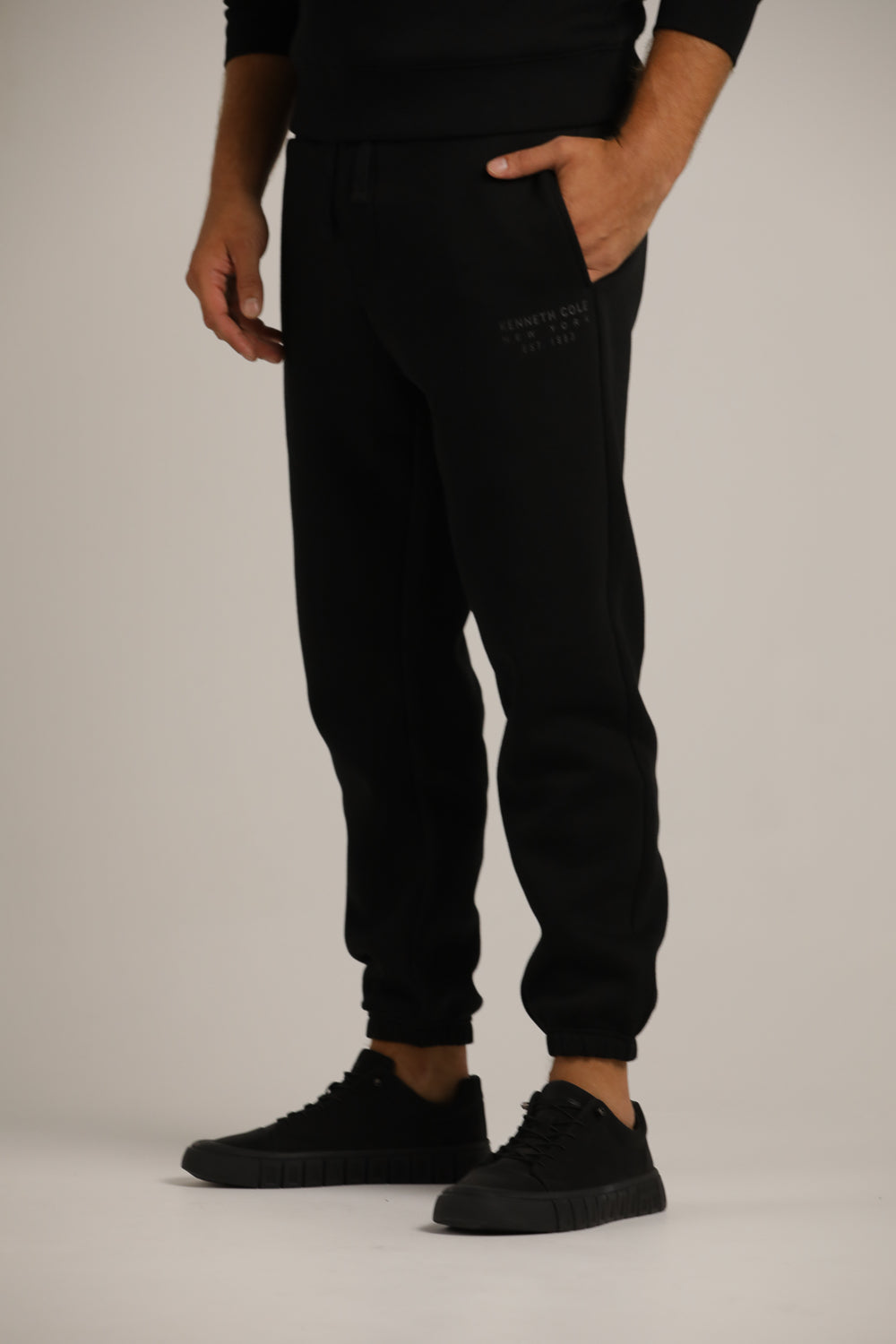 מכנסי ג'וגר מבית המותג KENNETH COLE לגברים בצבע שחור, עשויים מבד רך ונעים למגע, בגזרה נוחה ומחמיאה, מכילים גומי אלסטי במותן ושרוכים לקשירה, שני כיסים בצדדים וכיס אחורי, גומי אלסטי בסיומת העקב ולוגו המותג בצד.