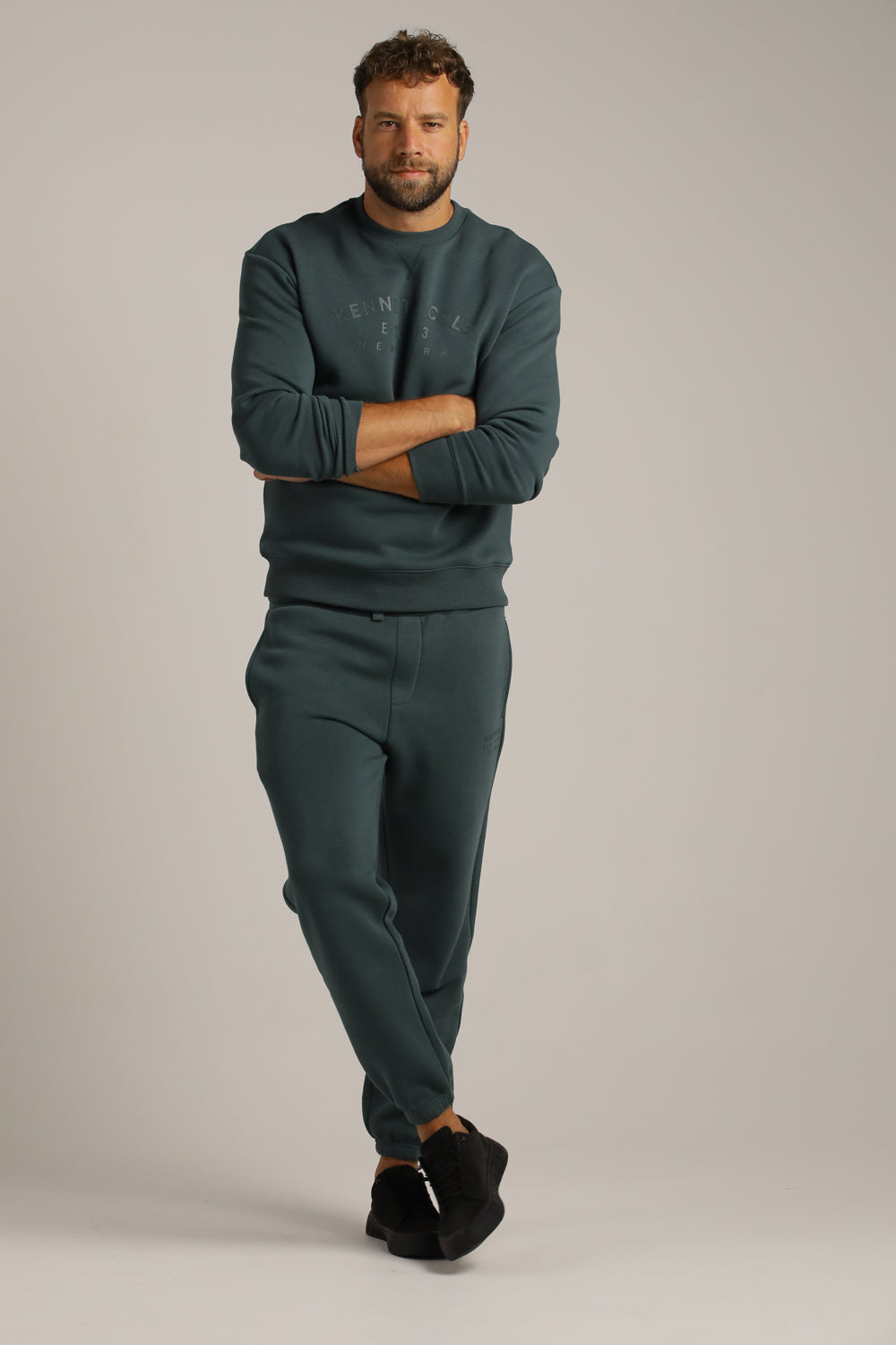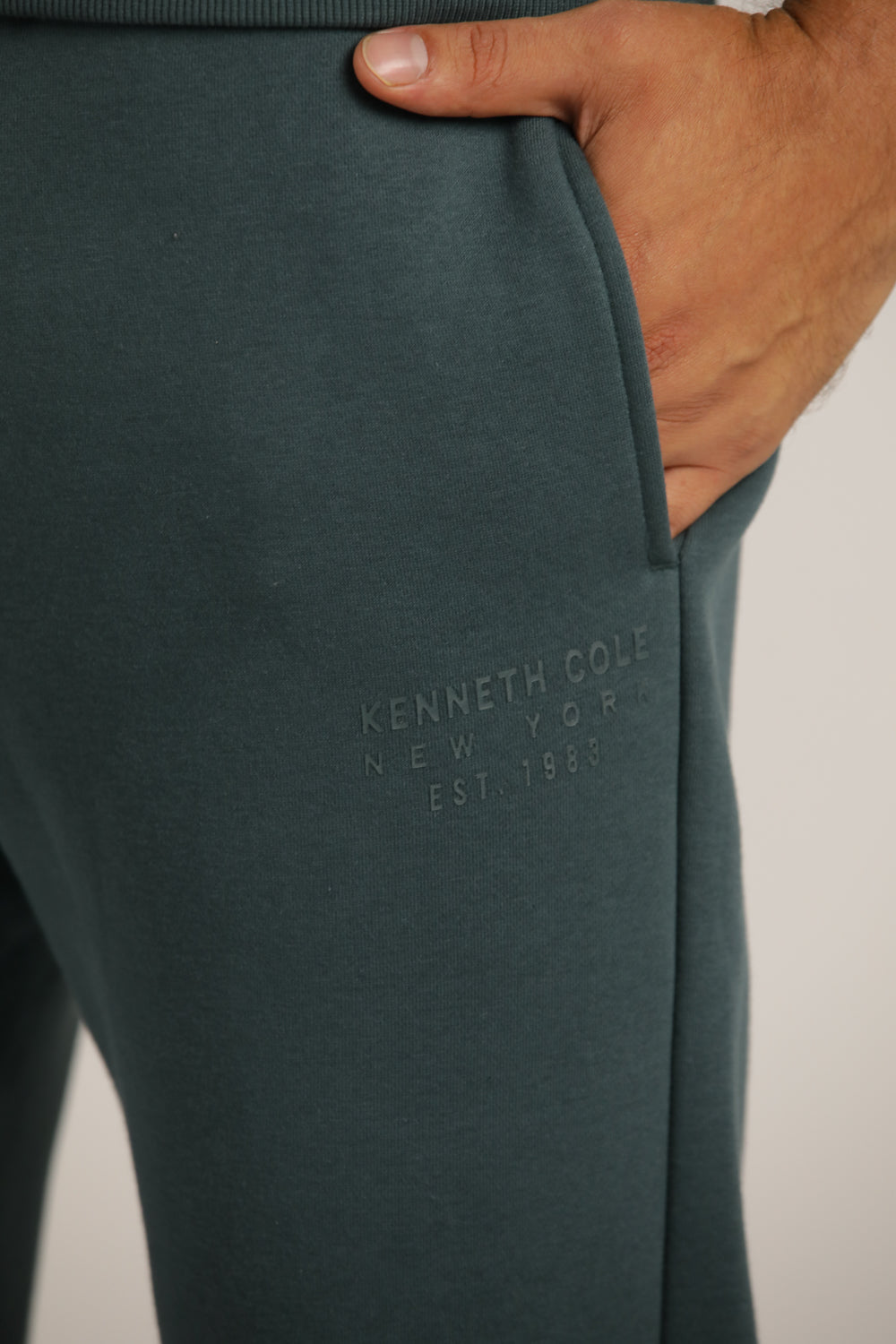 מכנסי ג'וגר מבית המותג KENNETH COLE לגברים בצבע ירוק, עשויים מבד רך ונעים למגע, בגזרה נוחה ומחמיאה, מכילים גומי אלסטי במותן ושרוכים לקשירה, שני כיסים בצדדים וכיס אחורי, גומי אלסטי בסיומת העקב ולוגו המותג בצד.