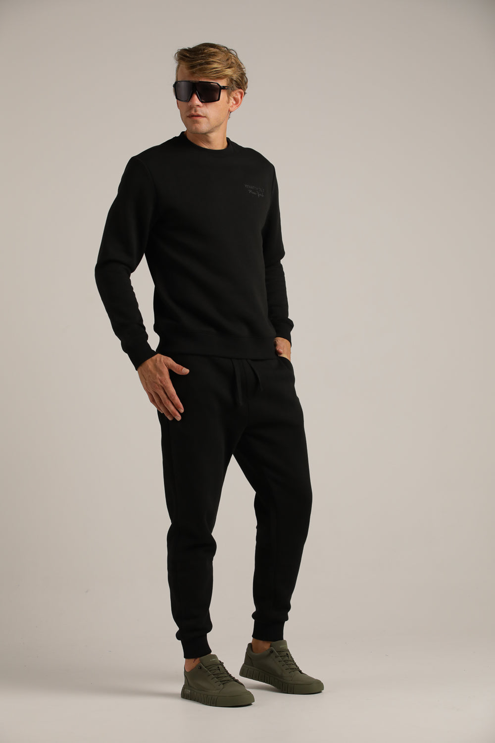 מכנסי טרנינג מבית המותג KENNETH COLE לגברים בצבע שחור, בעלי גזרה נוחה וקלילה, עשויים מבדך רך ונעים למגע לתחושה נעימה במהלך היום, כוללים גומי במותן ושרוכים לקשירה, כיסים בצדדים ואחד מאחורה, סיומת גומי בעקב ולוגו המותג בצד ליד הכיס.