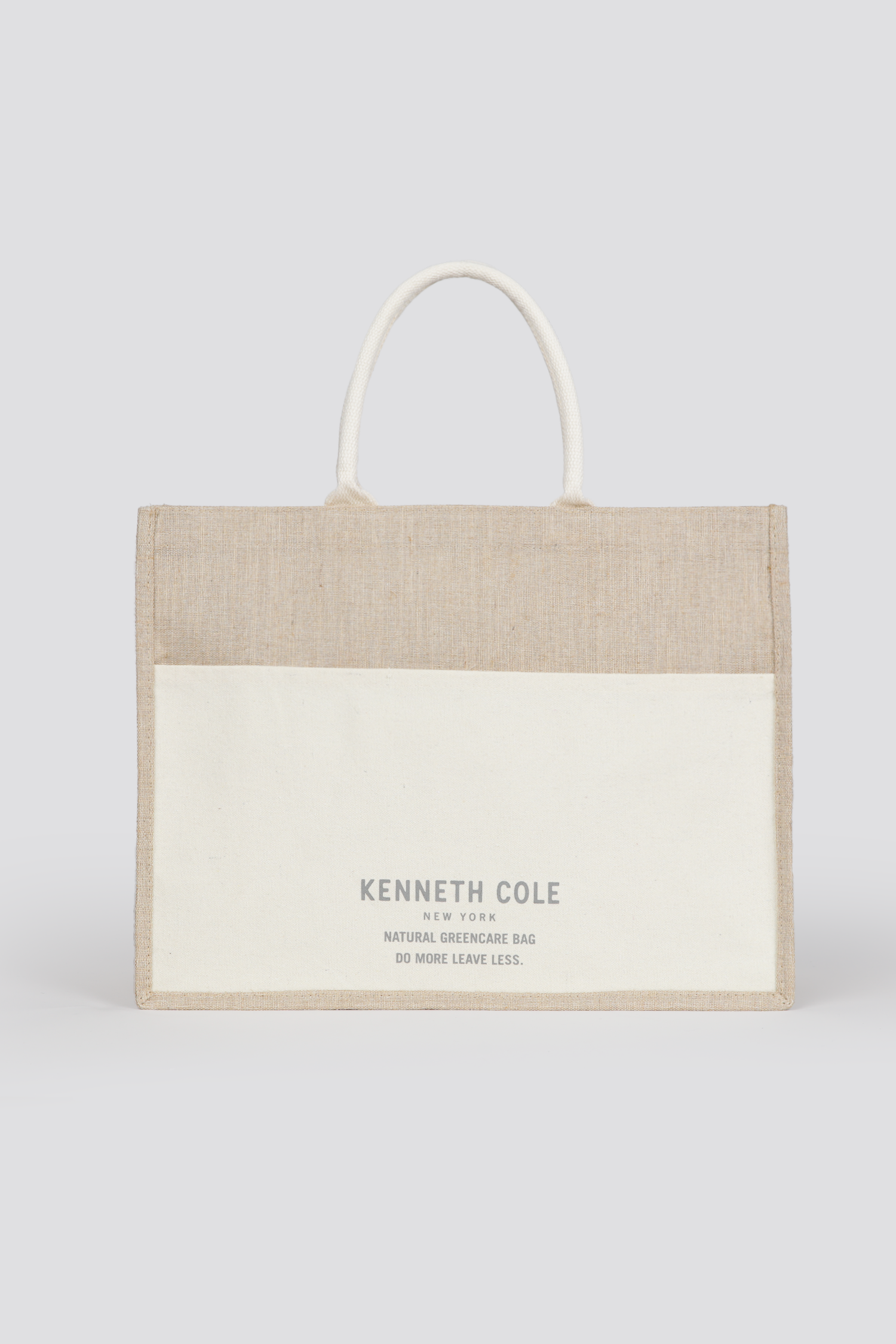 תיק בד מבית המותג KENNETH COLE לנשים, בעיצוב טבעי ונקי, עשוי מבד טבעי משני גוונים, מכיל תא מרווח לאחסון, תא קטן בחלק החיצוני, שני ידיות לנשיאת התיק והדפס לוגו המותג בחזית.