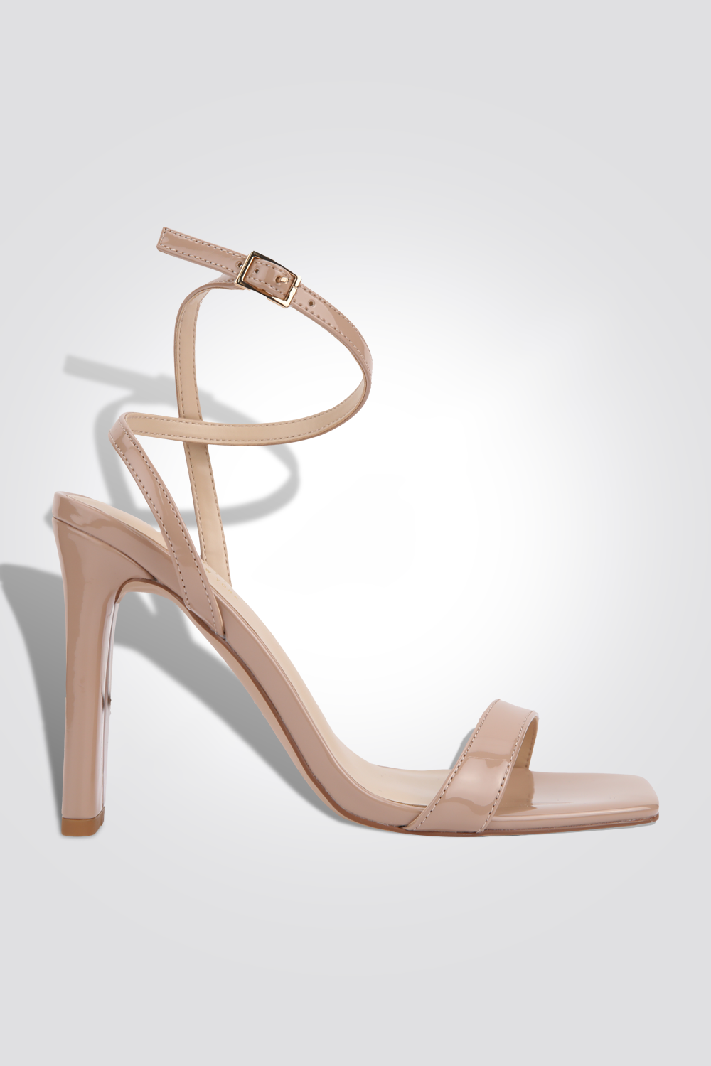 סנדל עקב עם רצועות קשירה בצבע בז' 9.5 ס"מ