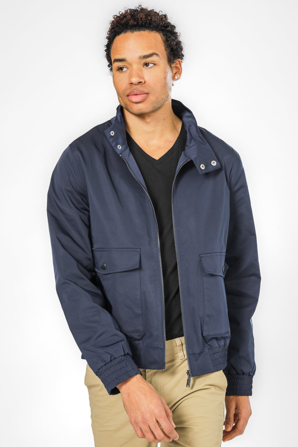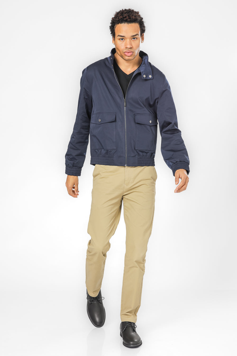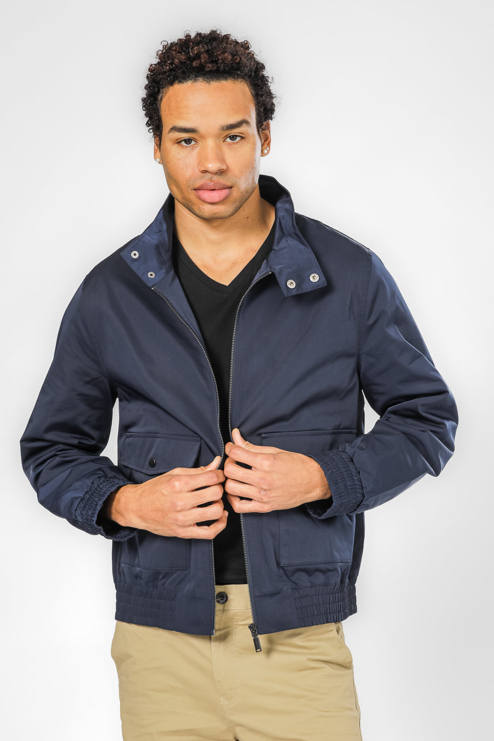 מעיל קצר דוחה מים צווארון אופנתי, 2 כיסים קדמיים בנראות ייחודית, סגירת רוכסן ומנג'ט