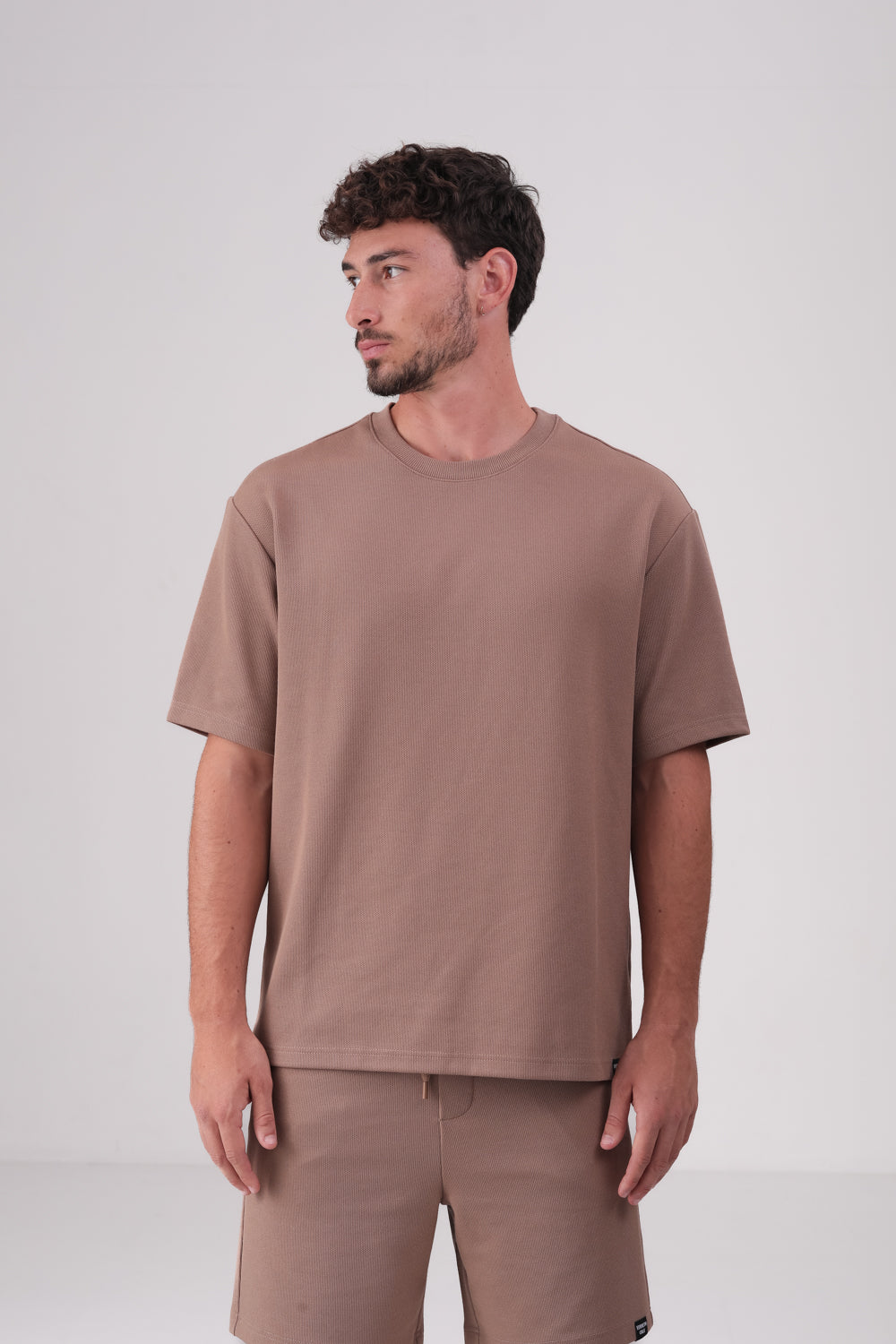 טישירט לגברים מבית המותג KENNETH COLE, בגזרת אוברסייז, עם שרוולים קצרים וצווארון עגול.