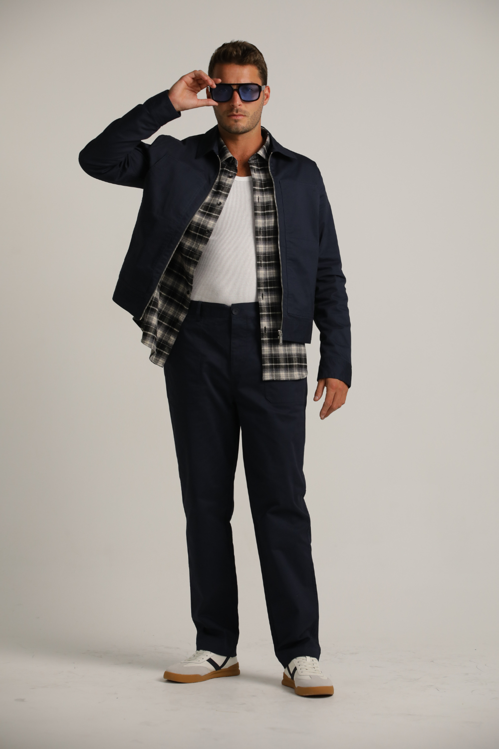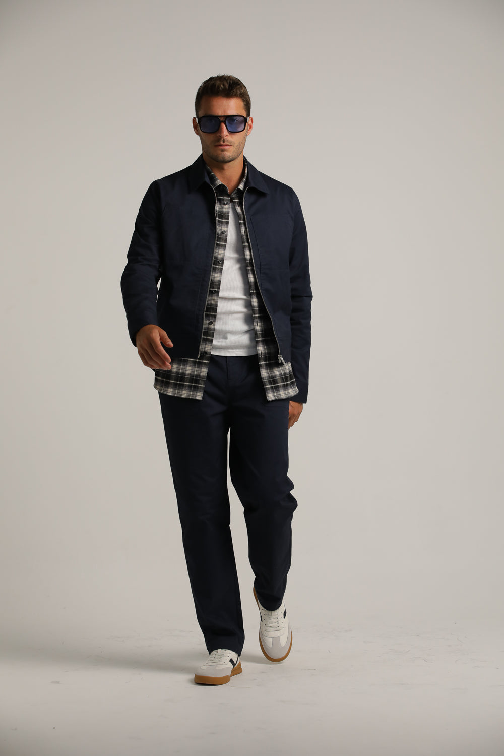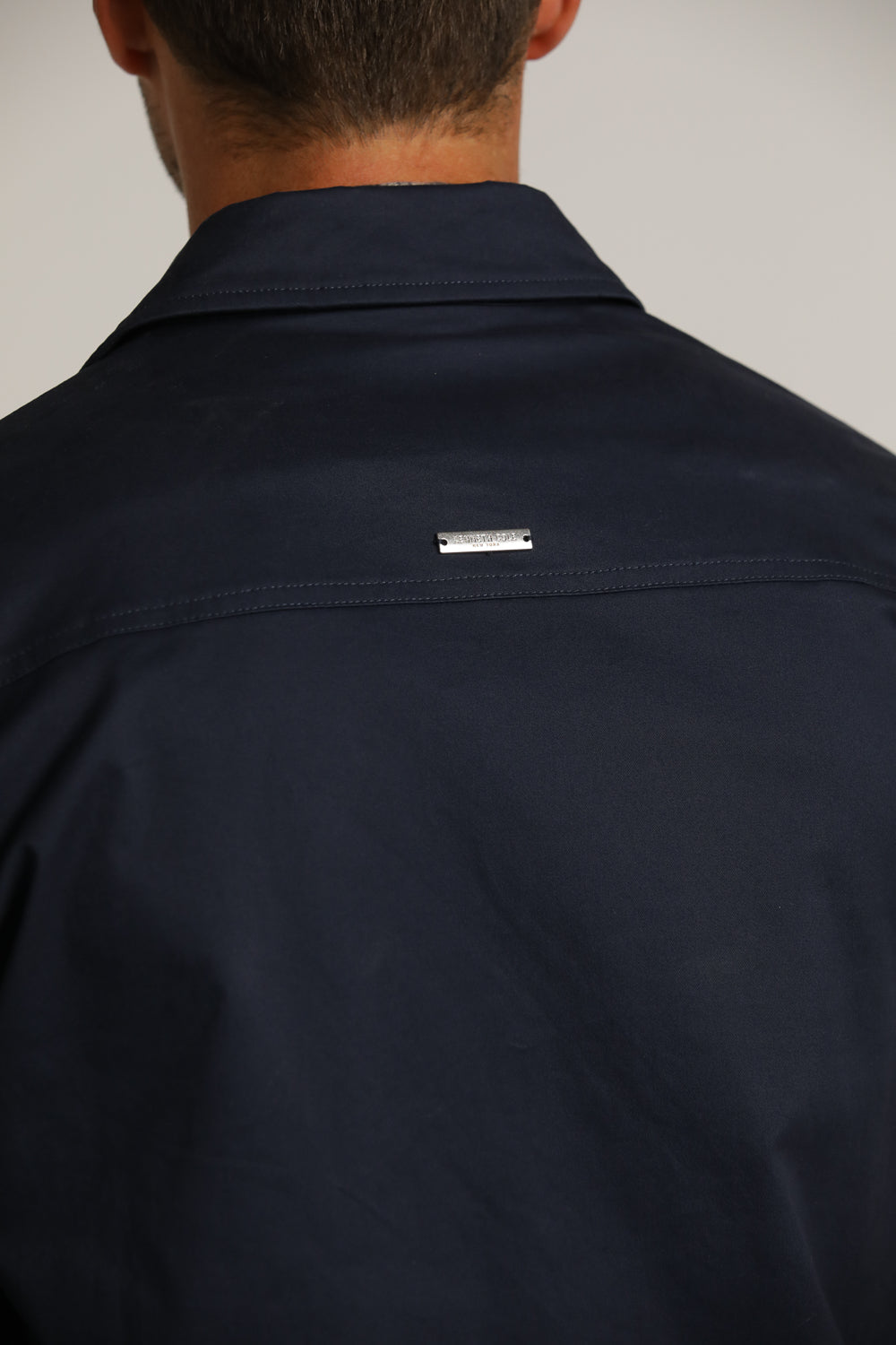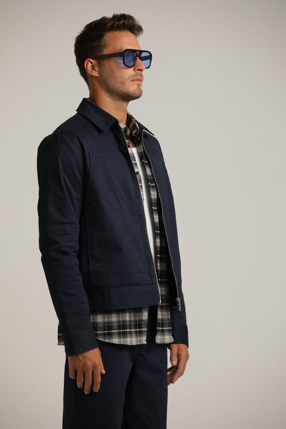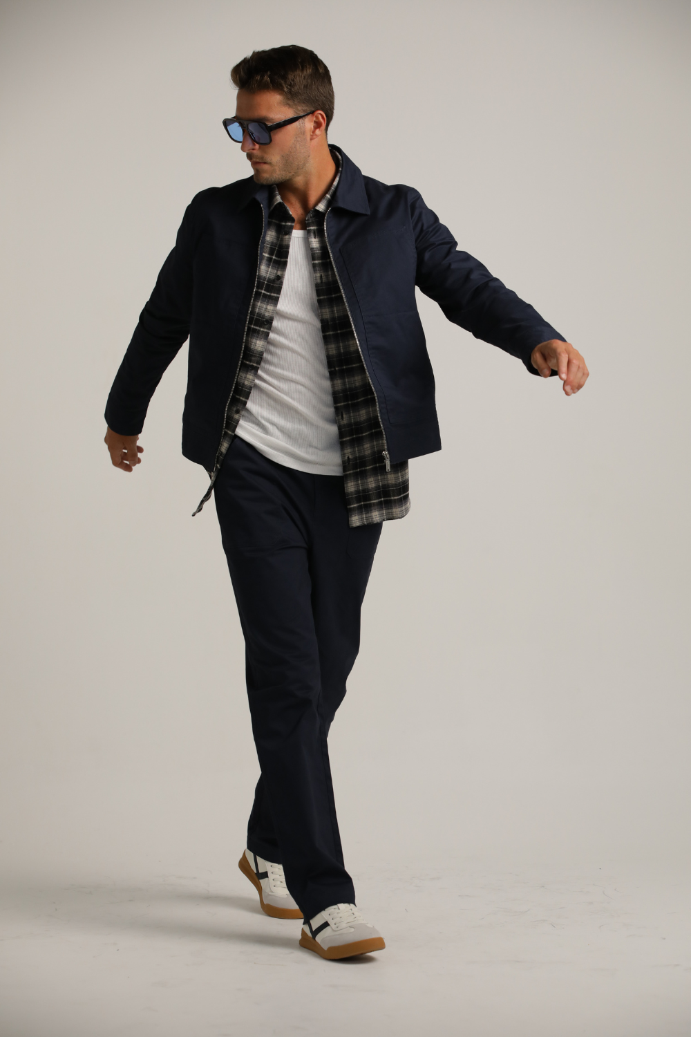 ג'קט מבית המותג KENNETH COLE לגברים בצבע נייבי, מעוצב בגזרת סלים קלאסית, בעל שרוולים ארוכים, שני כיסים חיצוניים וכיס פנימי, רוכסן לסגירה, צווארון מתקפל למראה אלגנטי ותגית מתכתית קטנה עם הטבעת לוגו המותג בגב הג'קט.