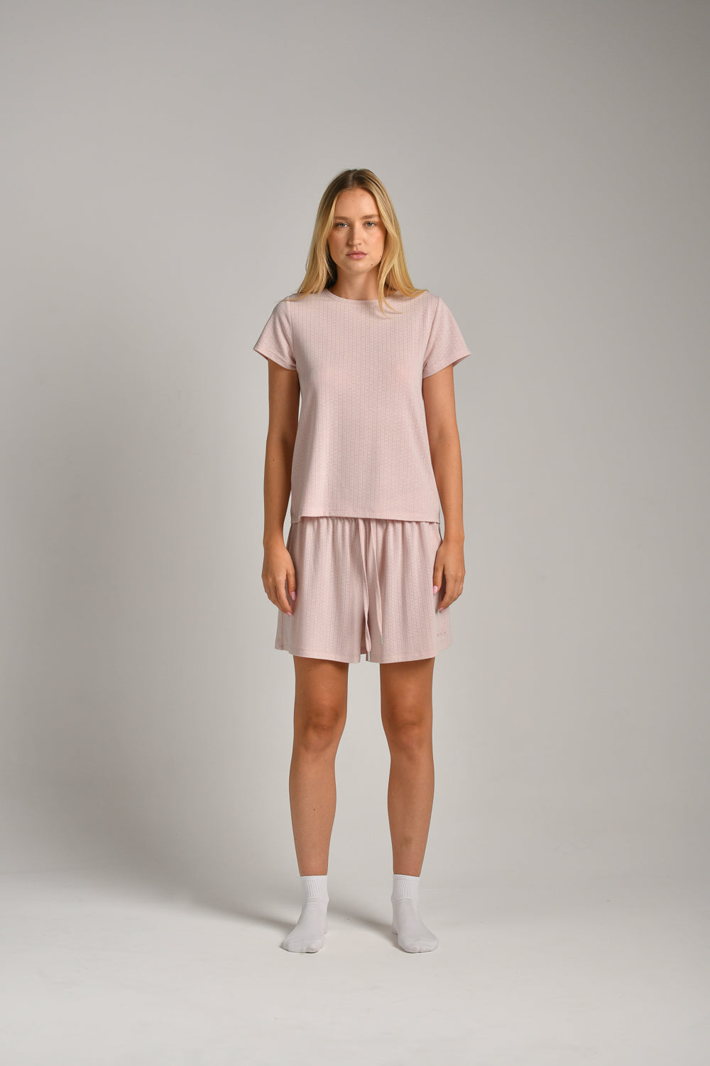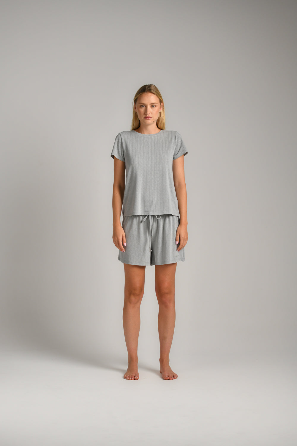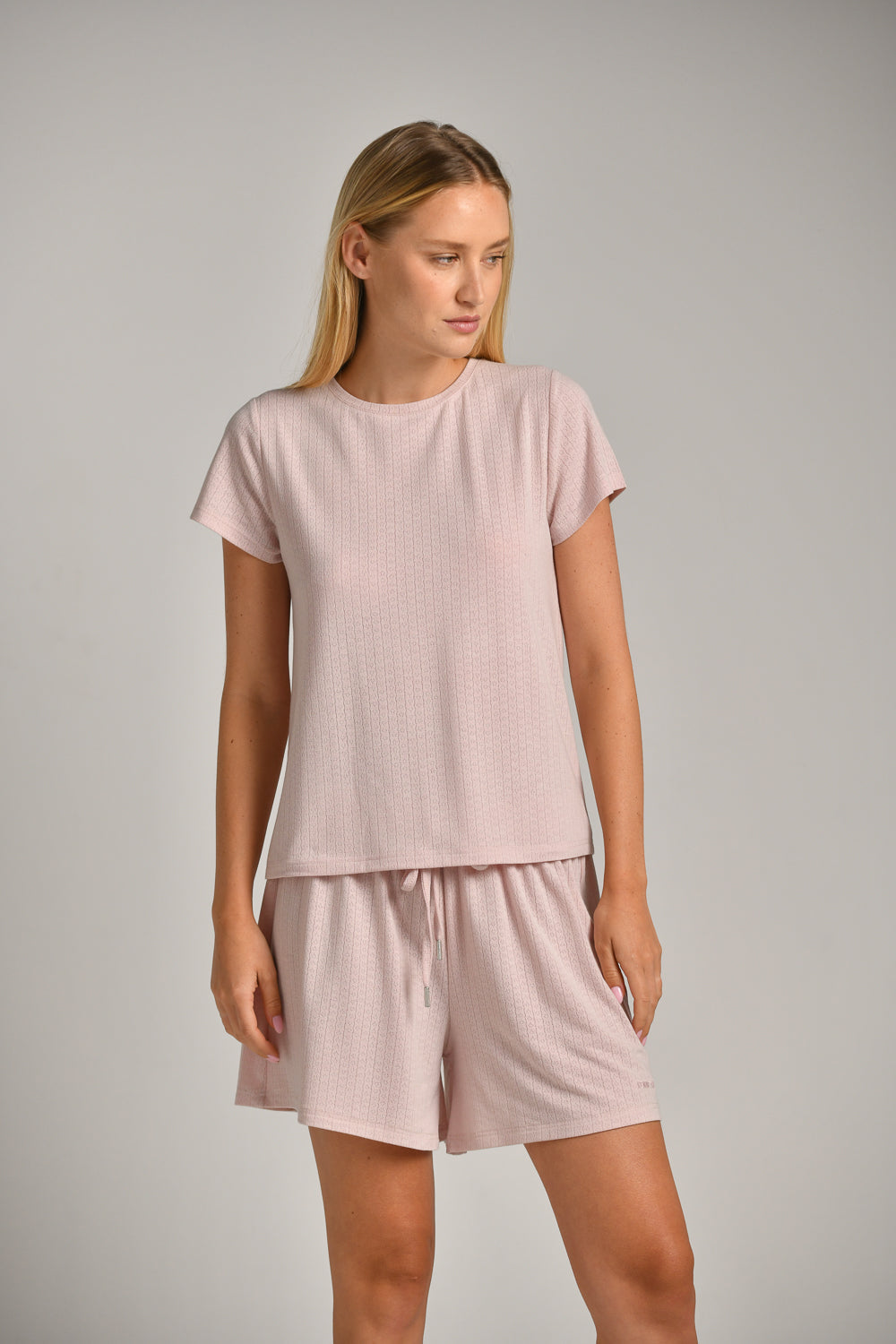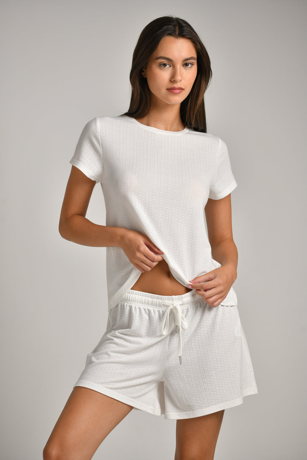 חולצת בית מבית המותג KENNETH COLE לנשים, קלילה ונוחה, בעלת שרוולים קצרים, צווארון עגול ומעוצבת עם טקסטורה.