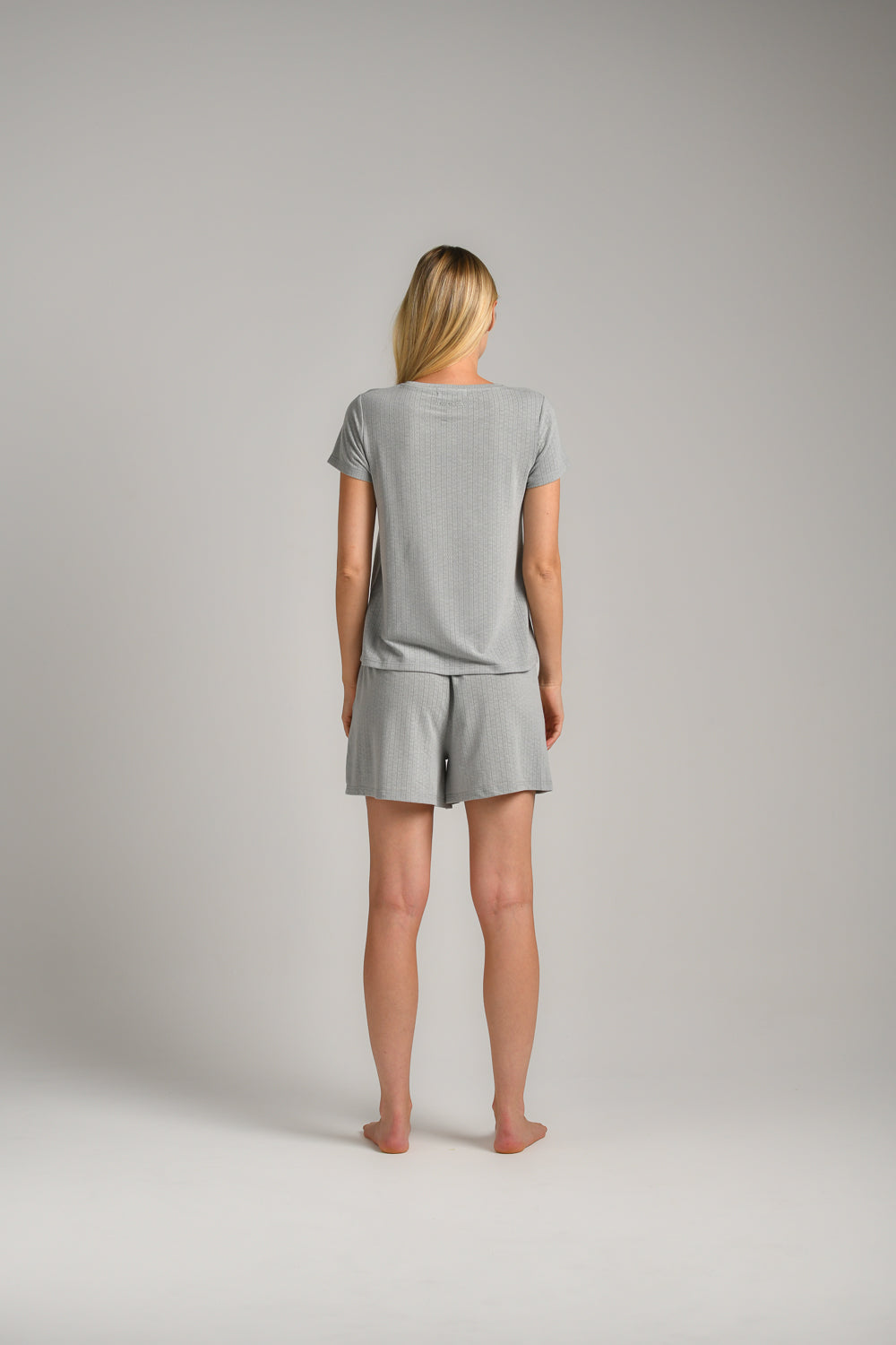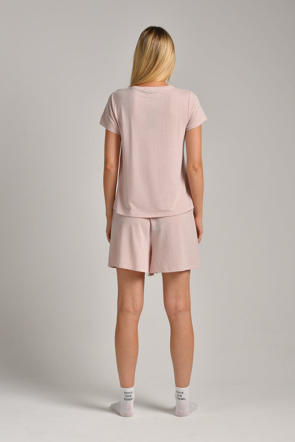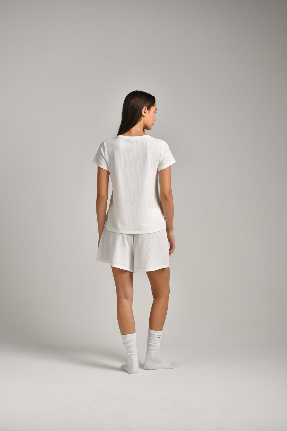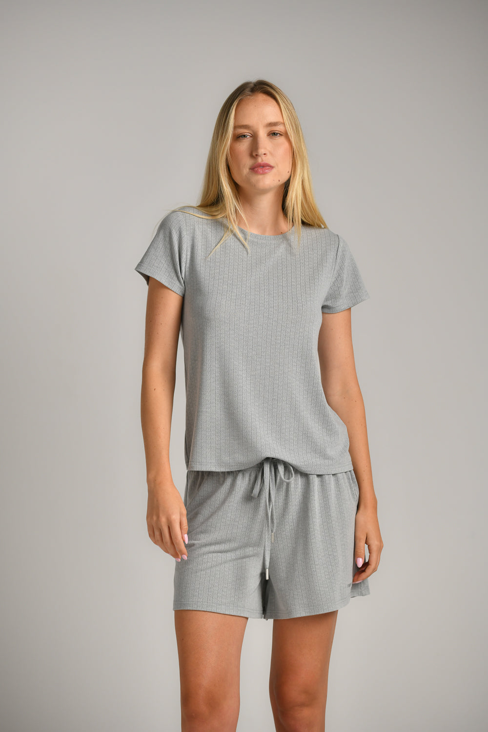חולצת בית מבית המותג KENNETH COLE לנשים, קלילה ונוחה, בעלת שרוולים קצרים, צווארון עגול ומעוצבת עם טקסטורה.