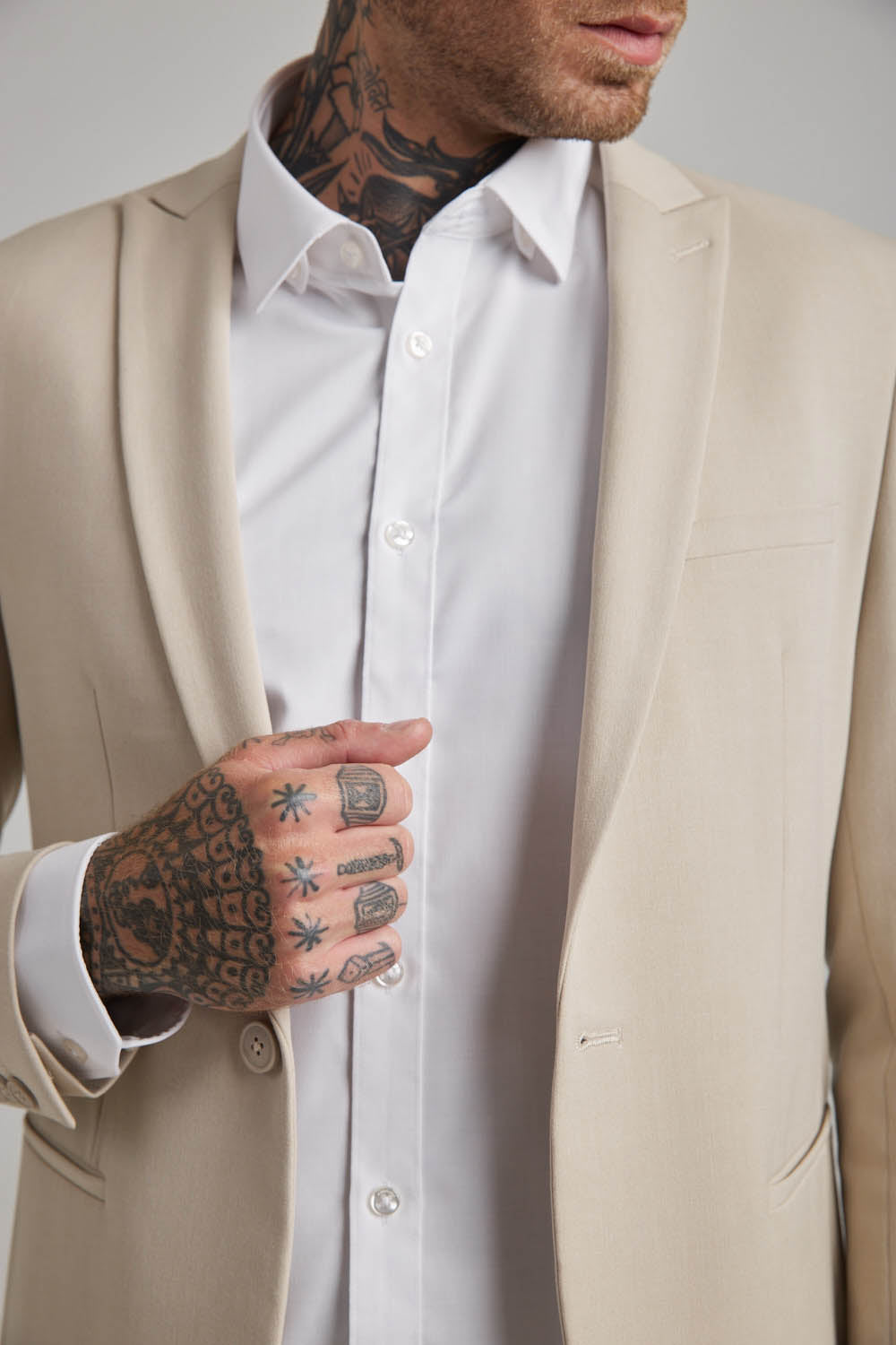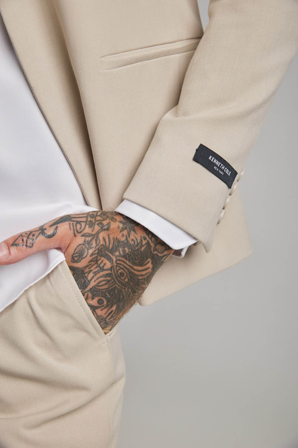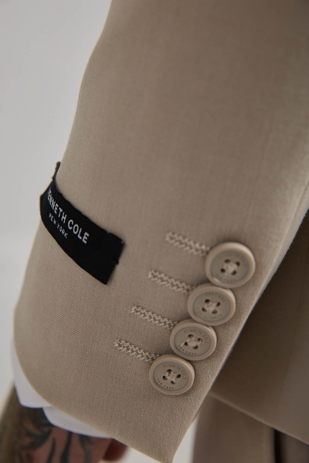 בלייזר מבית המותג KENNETH COLE לגברים, מעוצב בסגנון מחויט, שרוולים ארוכים, בעל כיסים בצד הפנימי ושני כפתורים לפתיחה וסגירה.