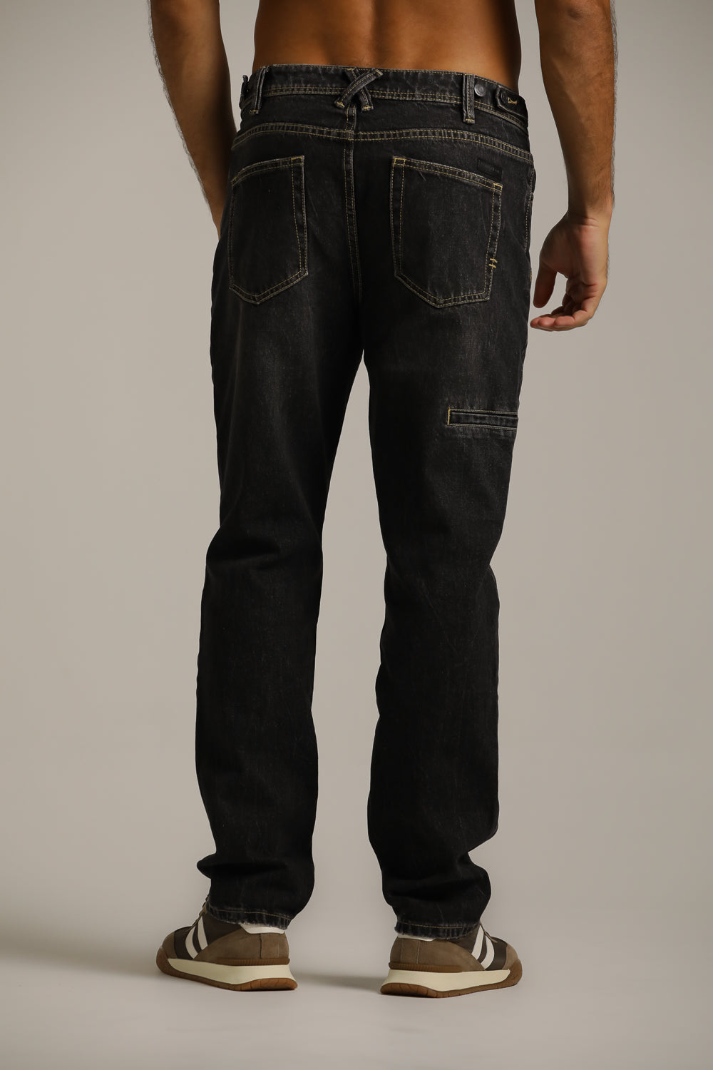 מכנסי ג'ינס מבית המותג KENNETH COLE לגברים בצבע שחור, בגזרה ישרה, עשויים מבד 100% כותנה נוח וקליל ללבישה יומיומית, מעוצבים במראה שטוף עם תפרים בצבע קונטרסטי המעניקים מראה ייחודי, מכיל לולאות סביב המותן לחגורה, כיסים מקדימה ומאחורה, כפתור ורוכסן לפתיחה וסגירה ודוגמת כיס דקורטיבי בצד.
