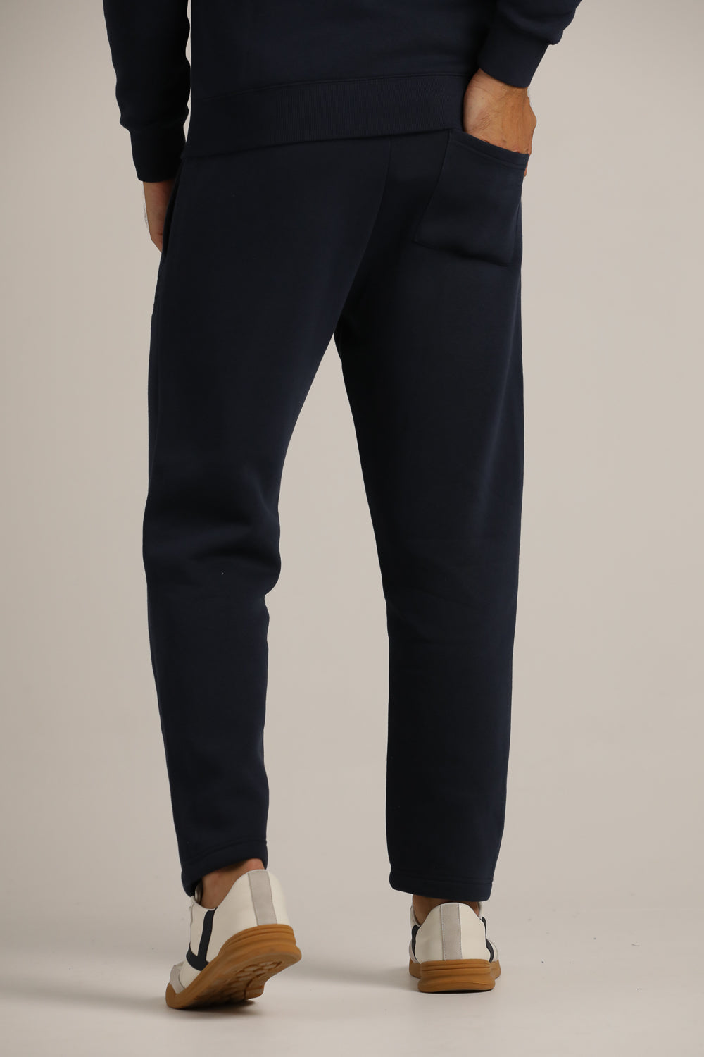 מכנסי טרנינג מבית המותג KENNETH COLE לגברים בצבע נייבי, עשויים מבד נוח ונעים למגע, בגזרה ישרה ובסגנון קז'ואלי, מכיל גומי במותן ושרוכים לקשירה, כיסים בצדדים ולוגו המותג בצד ליד הכיס.