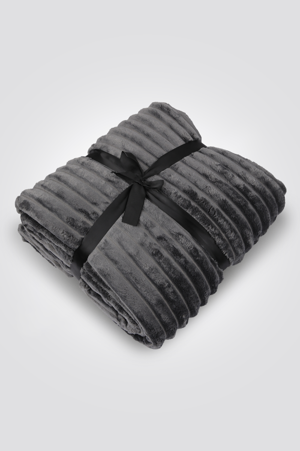 שמיכת פליז פסים זוגית 200/220 ס"מ בצבע אפור