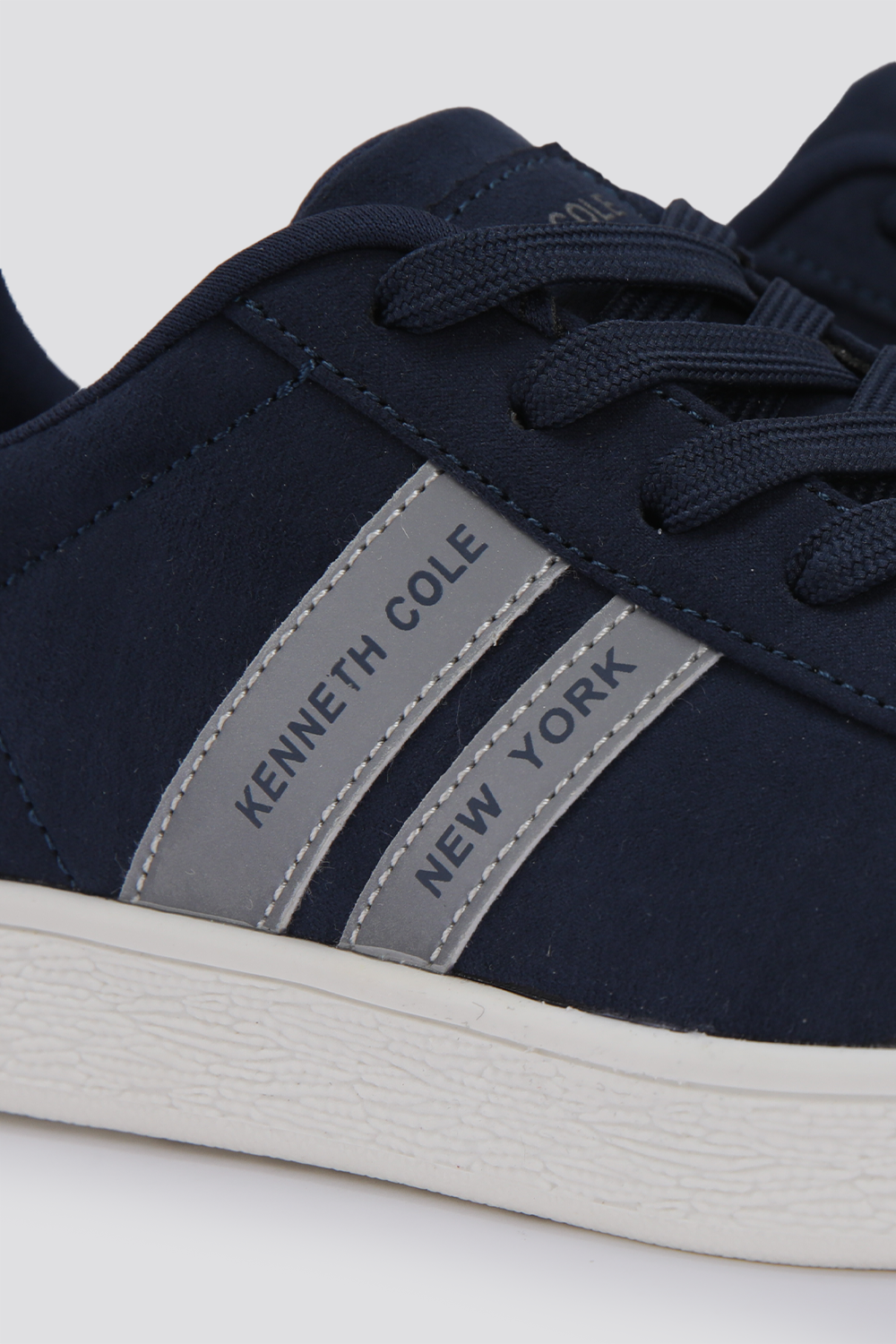 נעלי סניקרס לנשים מבית המותג KENNETH COLE מבד דמוי זמש, בעלות 2 פסים עם הדפס לוגו, שרוכי קשירה וסוליית גומי חיצונית בצבע לבן.