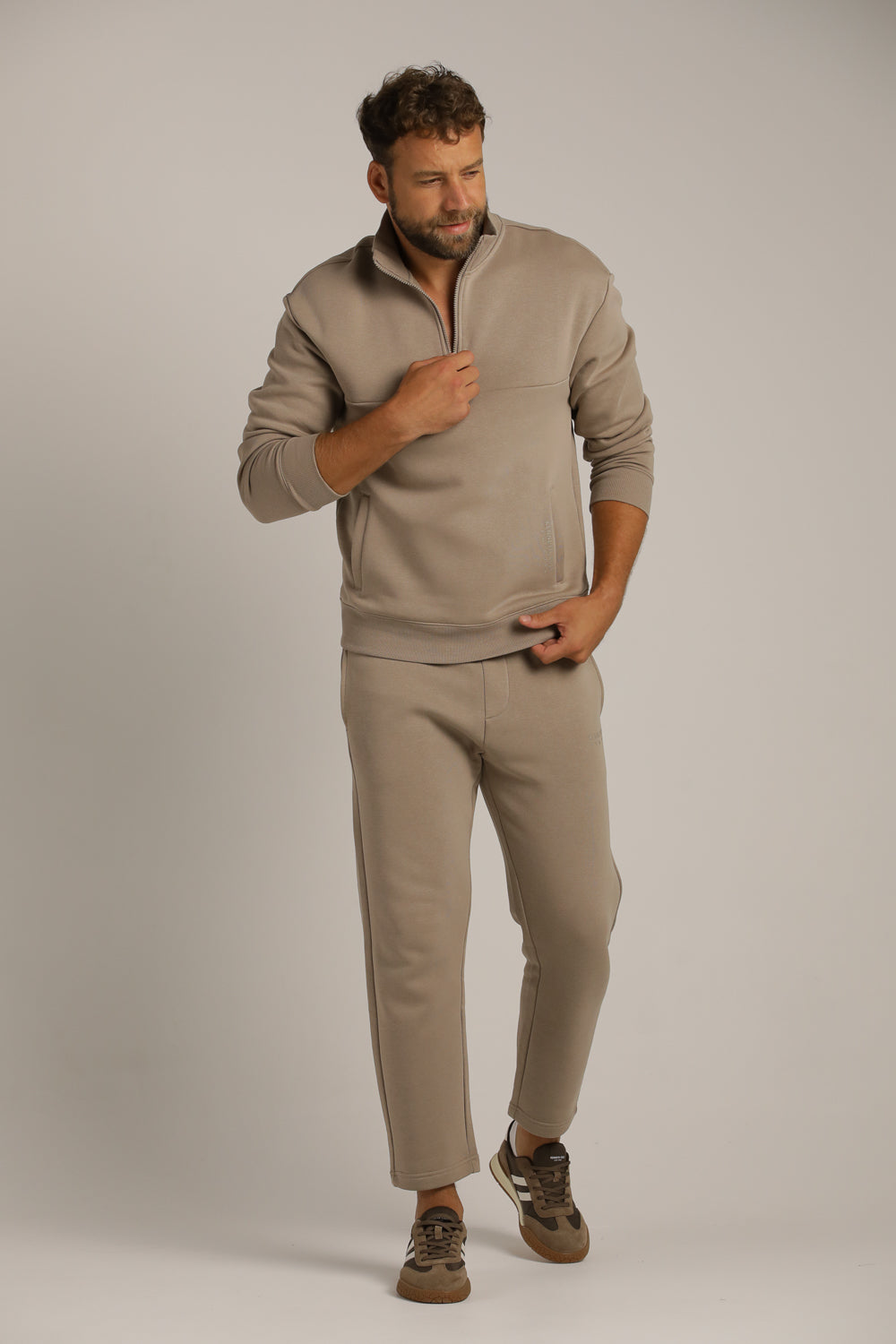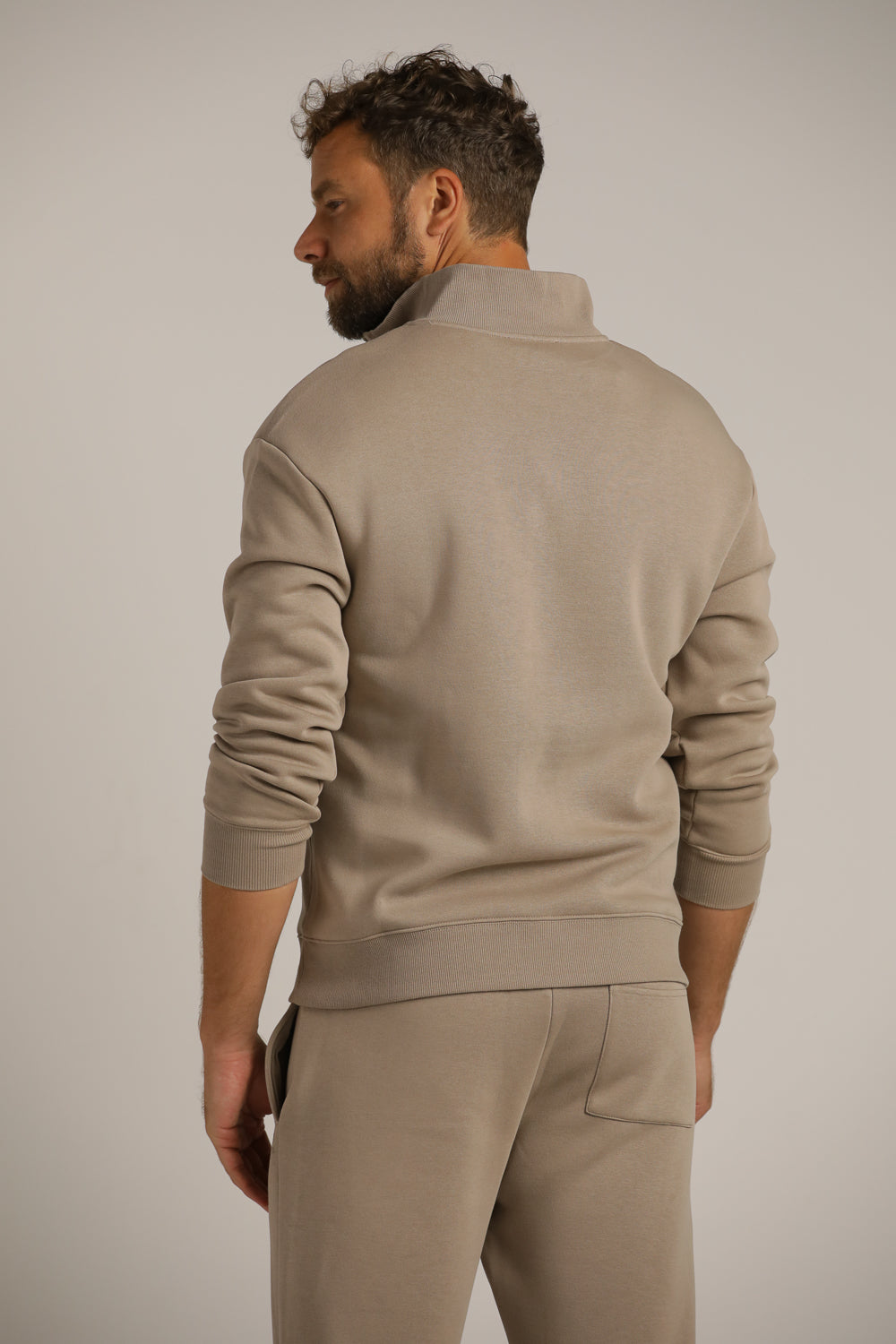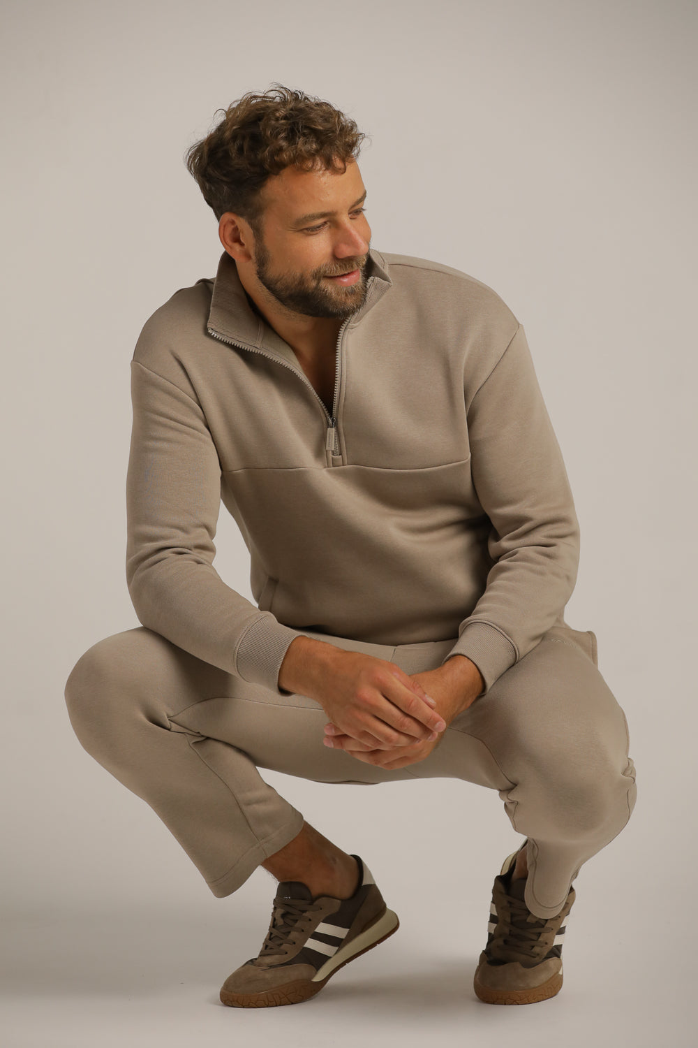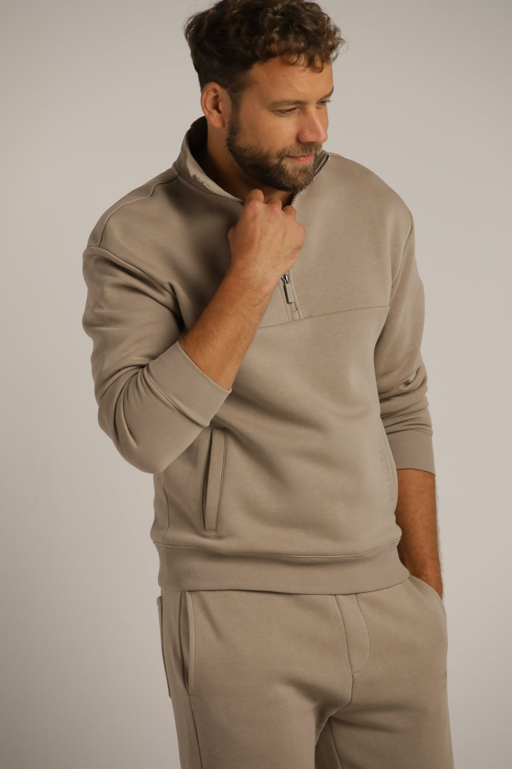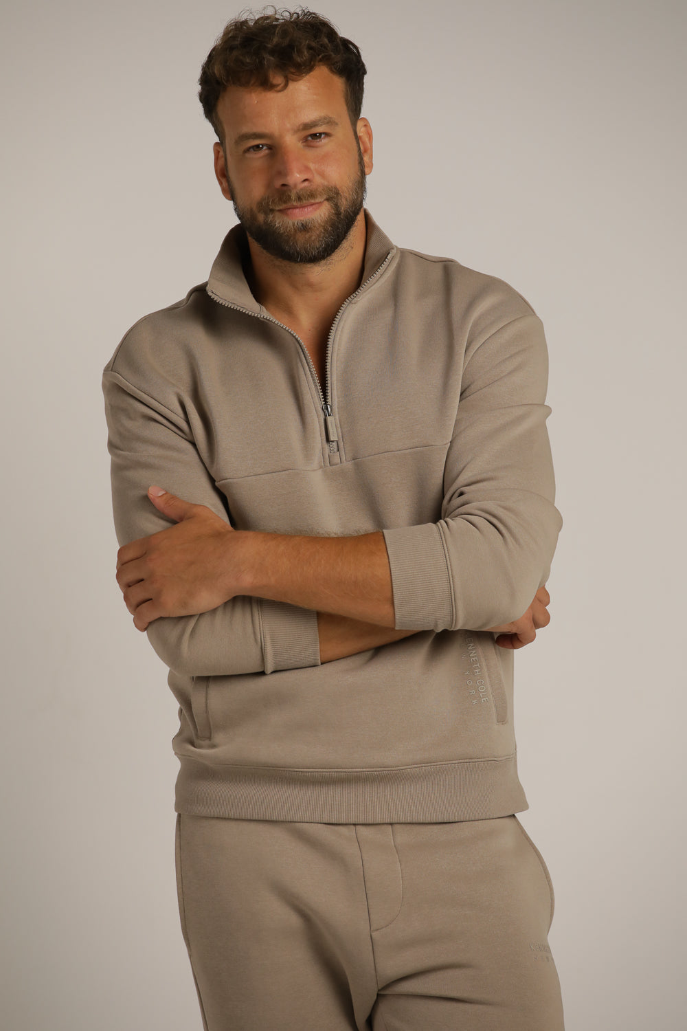 סווטשירט מבית המותג KENNETH COLE לגברים בצבע בז', עשוי מבד רך ונעים למגע, בגזרה מחמיאה המתאימה ליומיום, מכיל שרוולים ארוכים, חצי רוכסן בצווארון, כיסים בצדדים, לוגו המותג ליד הכיס וסיומת ריב אלסטית בקצה קו הסווטשירט והשרוולים.
